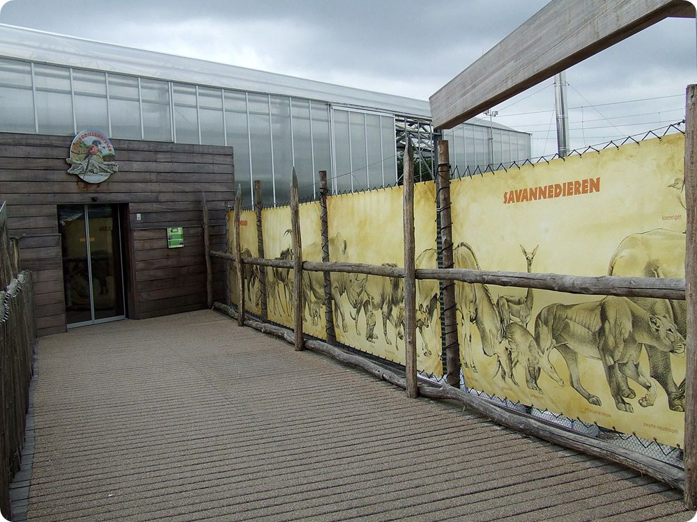 Az Afrikai szavanna bemutató (Afrikaanse Savanne) központi társaskifutója a fekete kontinens jellegzetes, nyílt, füves pusztáit jeleníti meg recés zsiráfokkal (Giraffa camelopardalis reticulata) és nagy kudukkal (Tragelaphus strepsiceros). 2010-2015 között szintén itt kerültek bemutatásra a Thomson-gazellák (Eudorcas thomsonii) is. A Chapman-zebrák (Equus quagga chapmani) és struccok (Struthio camelus australis) kifutórésze elszeparált a zsiráfok területétől, ám azzal vizuálisan egybeolvad. A ragadozókat három faj képviseli a területen, mint foltos hiénák (Crocuta crocuta), szerválok (Leptailurus serval) és sárga mongúzok (Cynictis penicillata).
