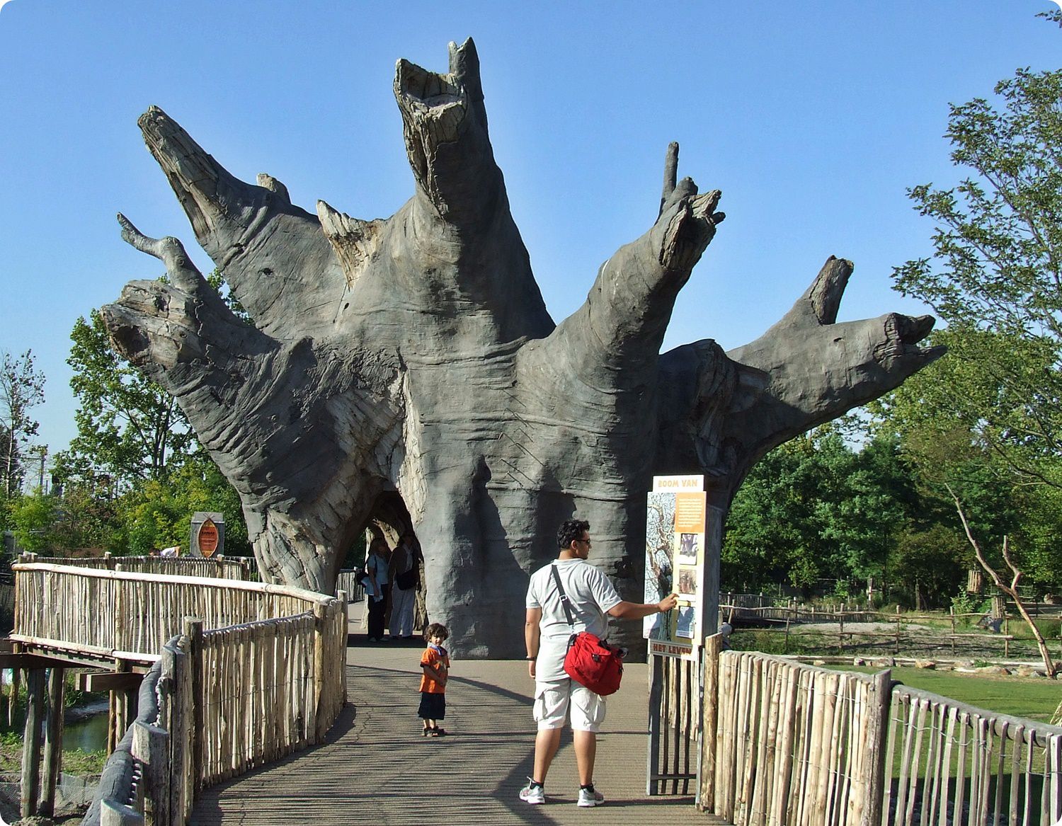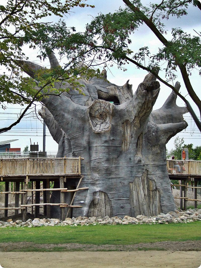 Az óriási baobab nem pusztán kilátóként és látványelemként funkcionál a blijdorpi szavannán: 2009-től a zsiráfokkal szomszédos kifutón élnek a kert foltos hiénái, s a termetes műfa alsó szintje egyben a nagyragadozók belső férőhelyeit is magába foglalja.