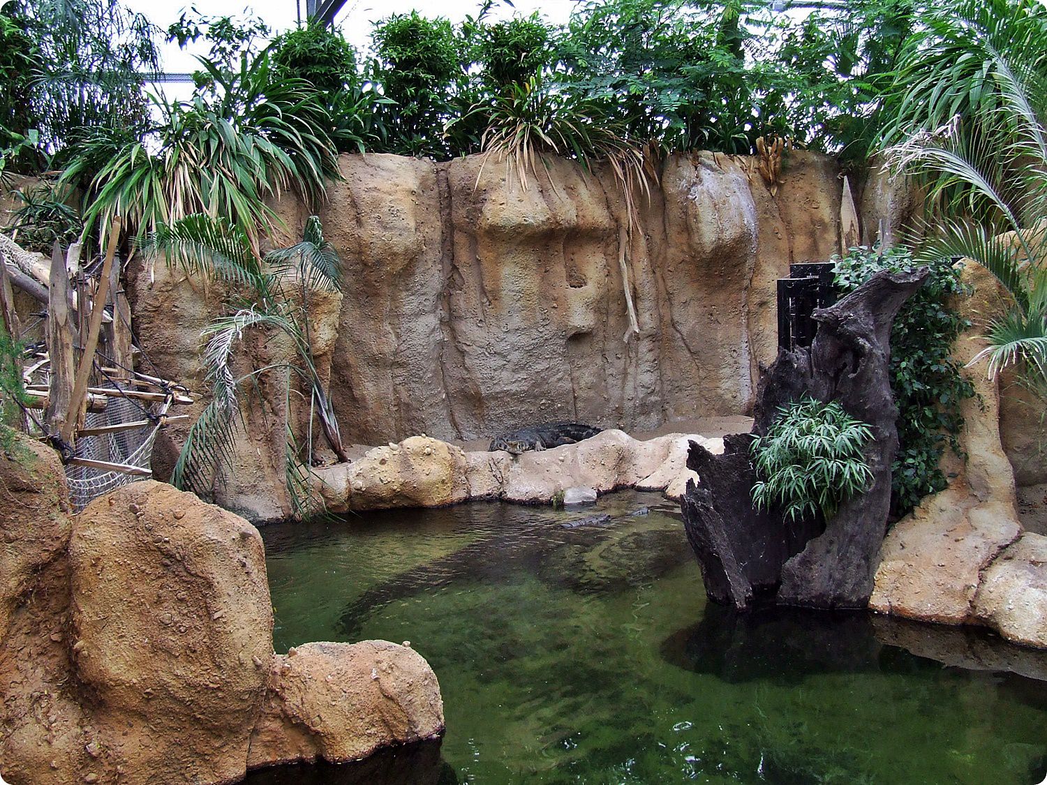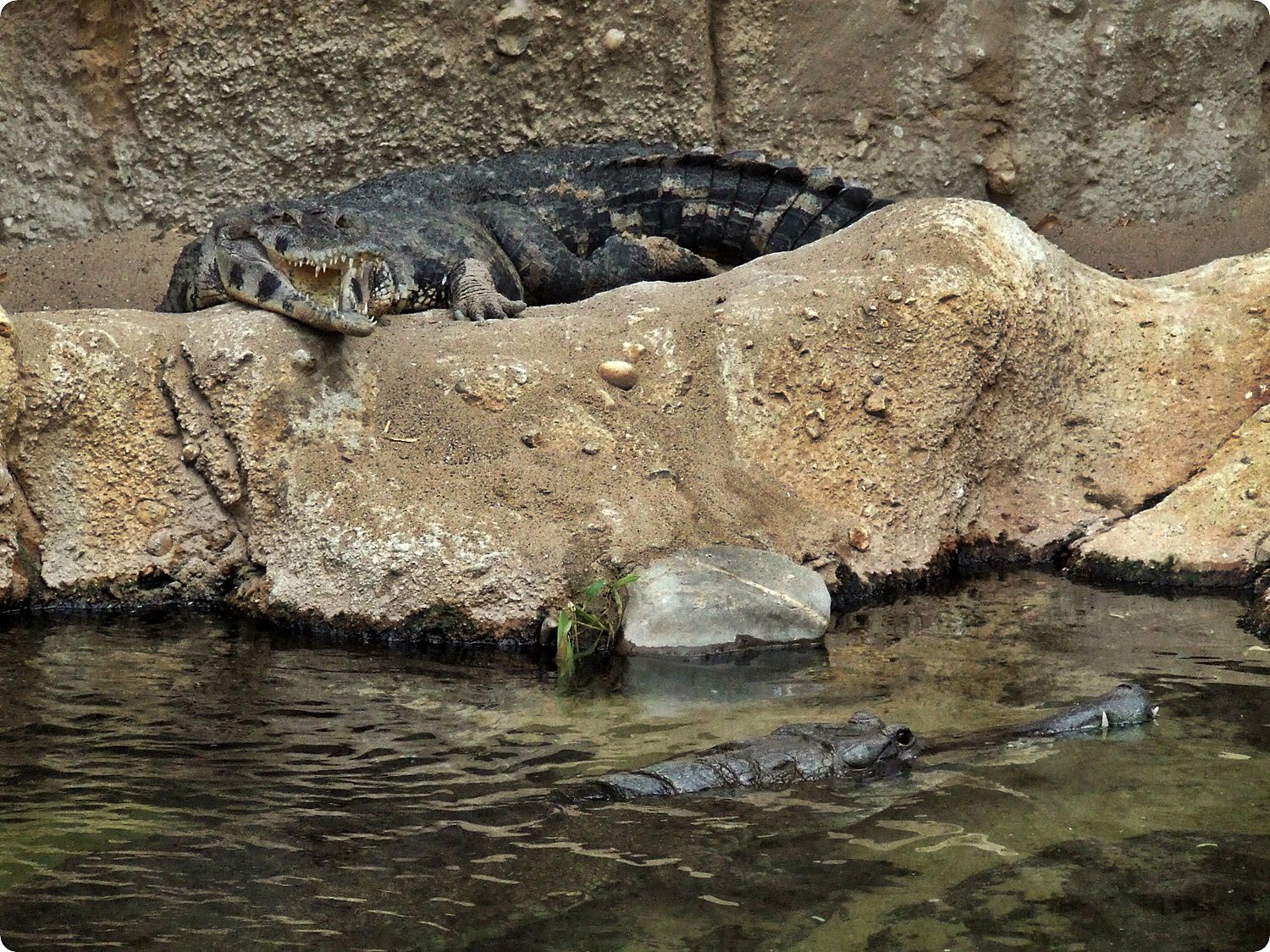 A fenti 2009-es felvételen Hakuna és Matata, a világ legidősebb jegyzett krokodiljai láthatóak. A jobb oldali és lenti fotó a keskenyorrú krokodilok férőhelyét mutatja.