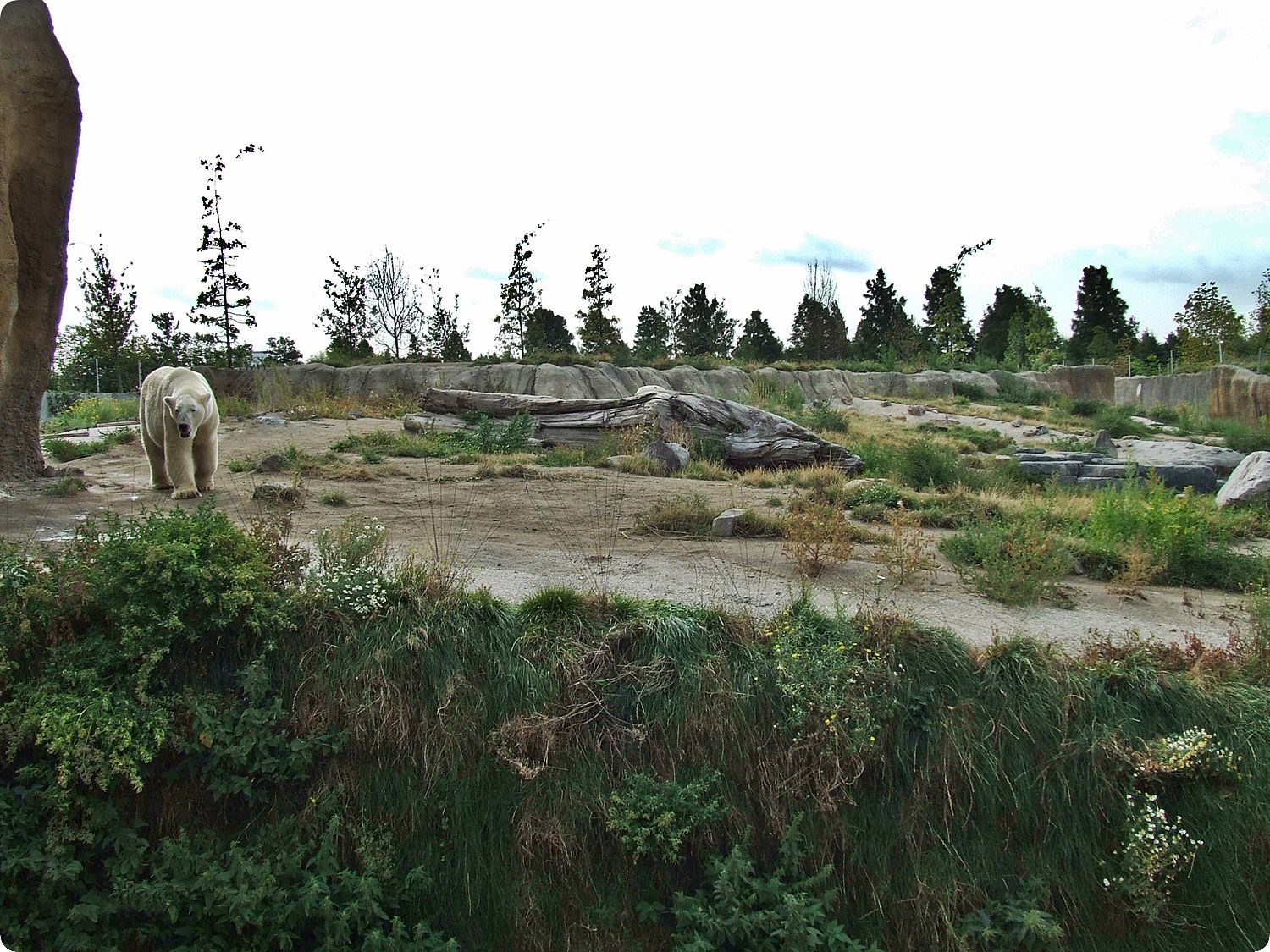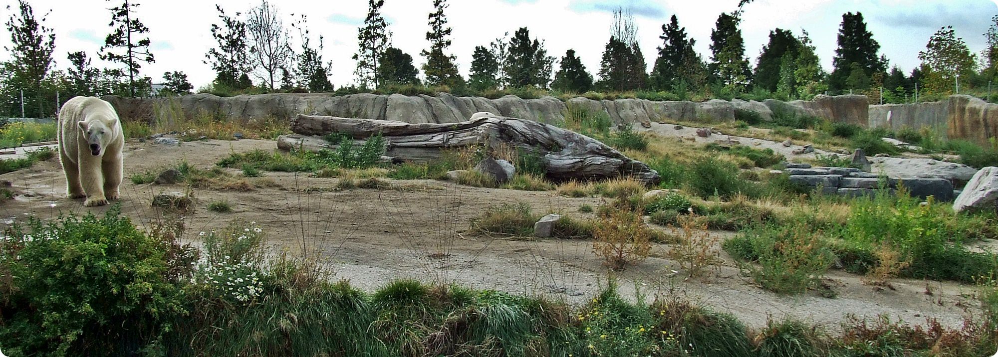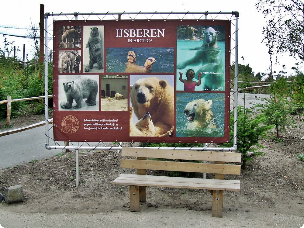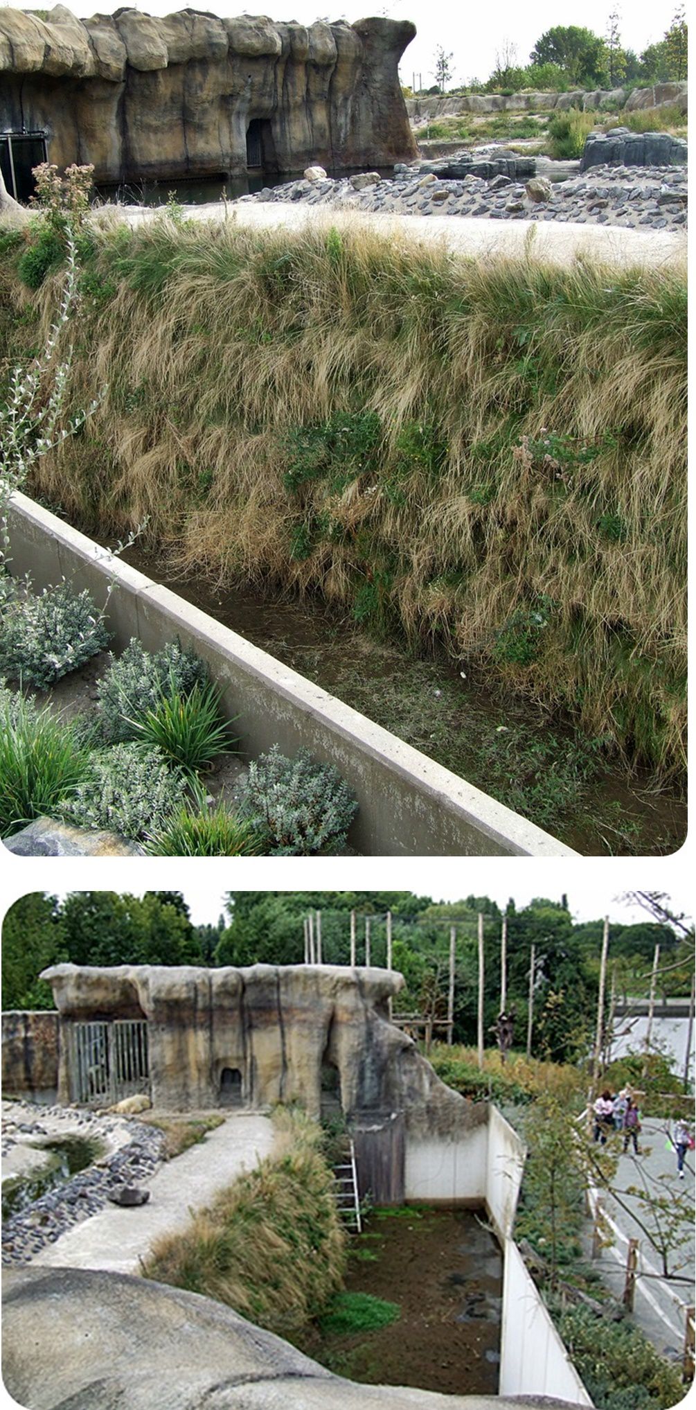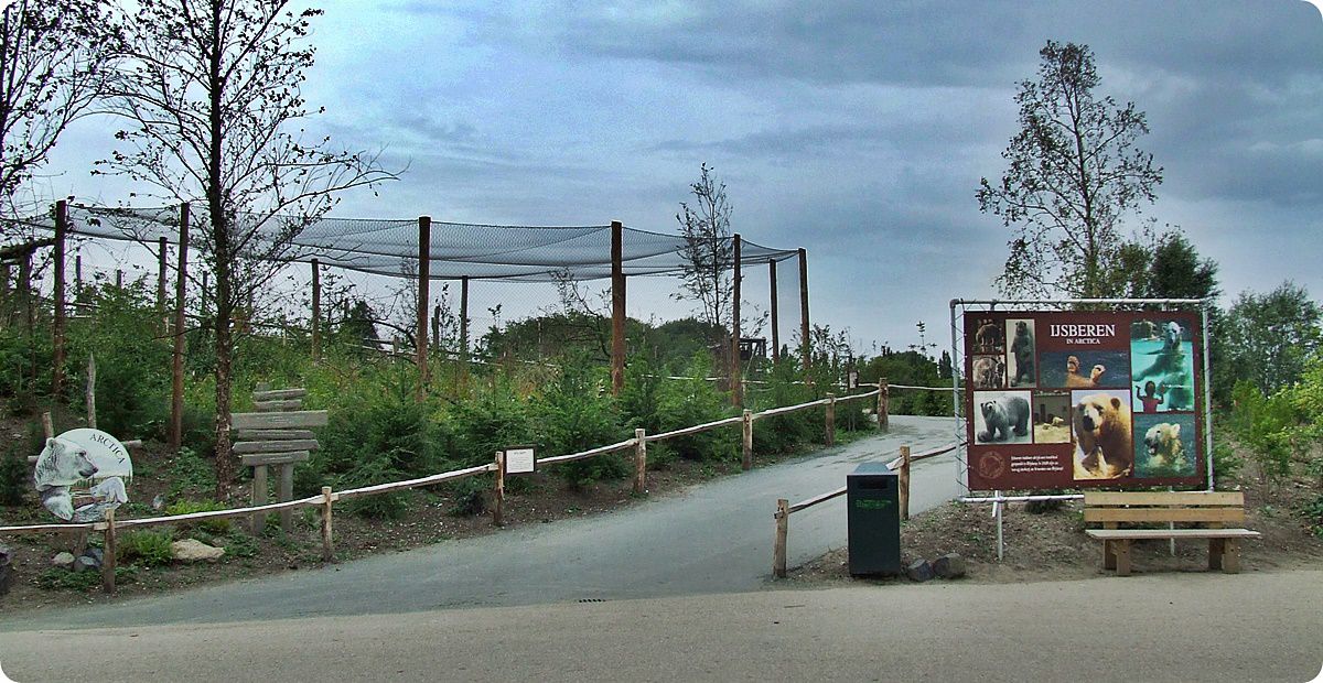 A jegesmedvék területe természetes és egységes tájkép benyomását kelti a látogatókban, hiszen rácsok nem zavarják a szemlélődést: mindkét kifutó frontvonalán széles szárazárok húzódik, melyek szélén elszáradt pázsitfüveknek látszó villanypásztor akadályozza a medvék közeljutását. A kiemelt látványpontok kialakítása során ügyeltek arra, hogy azok mélyebben helyezkedjenek el a kifutón mozgó állatoknál, így a látvány háttere a horizontra tevődve elfedi a szeparáció mesterséges voltát.