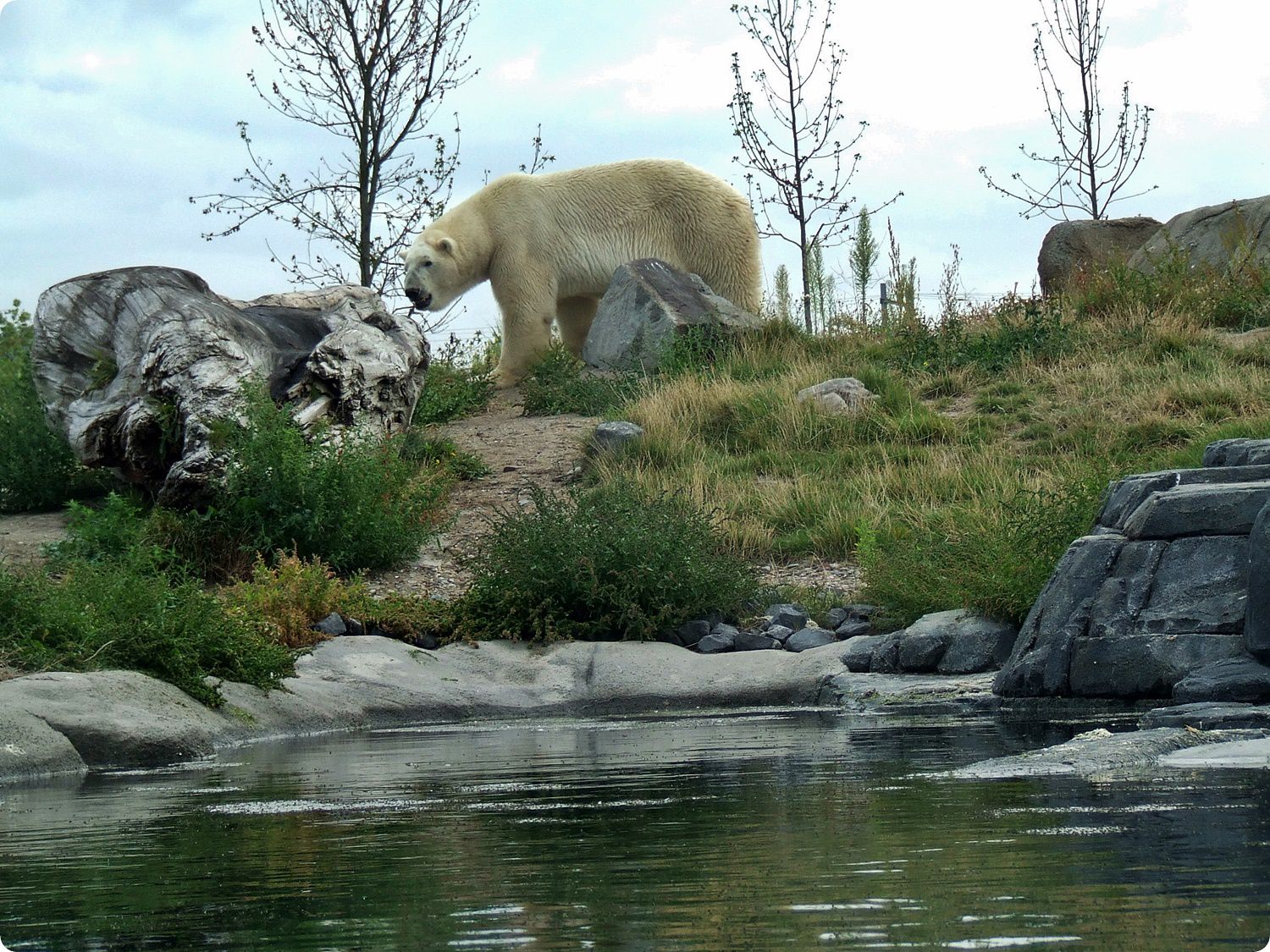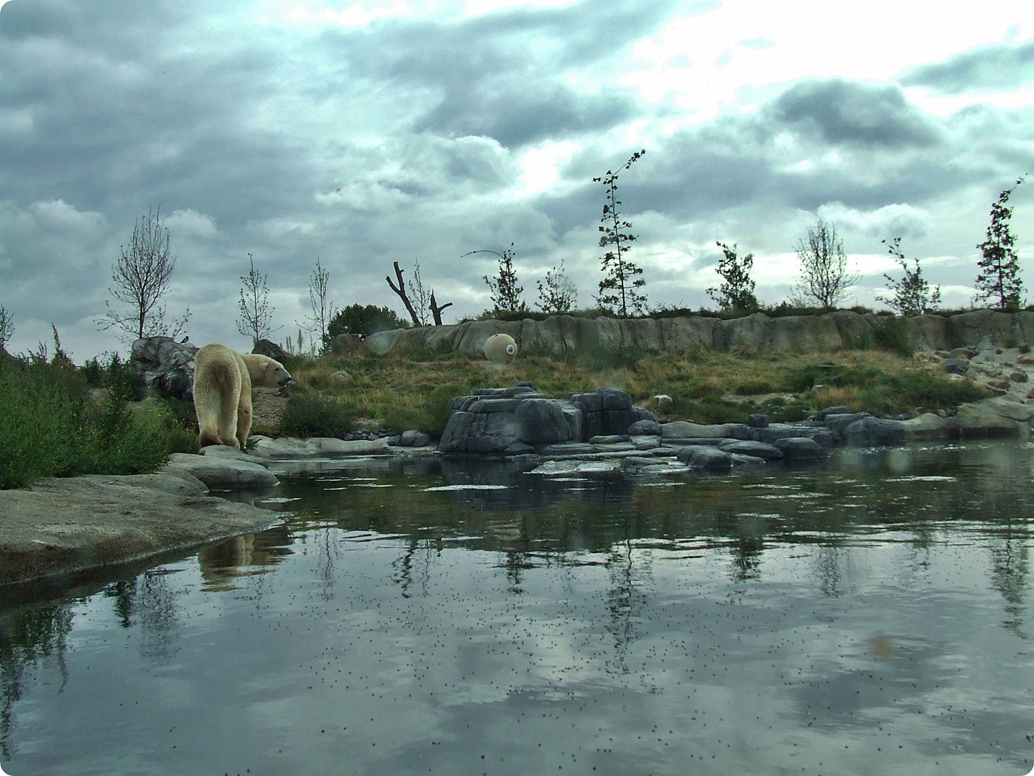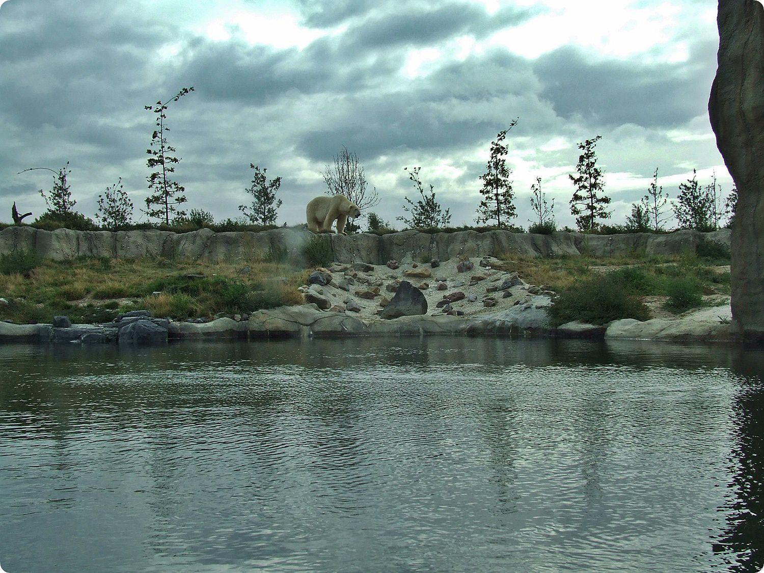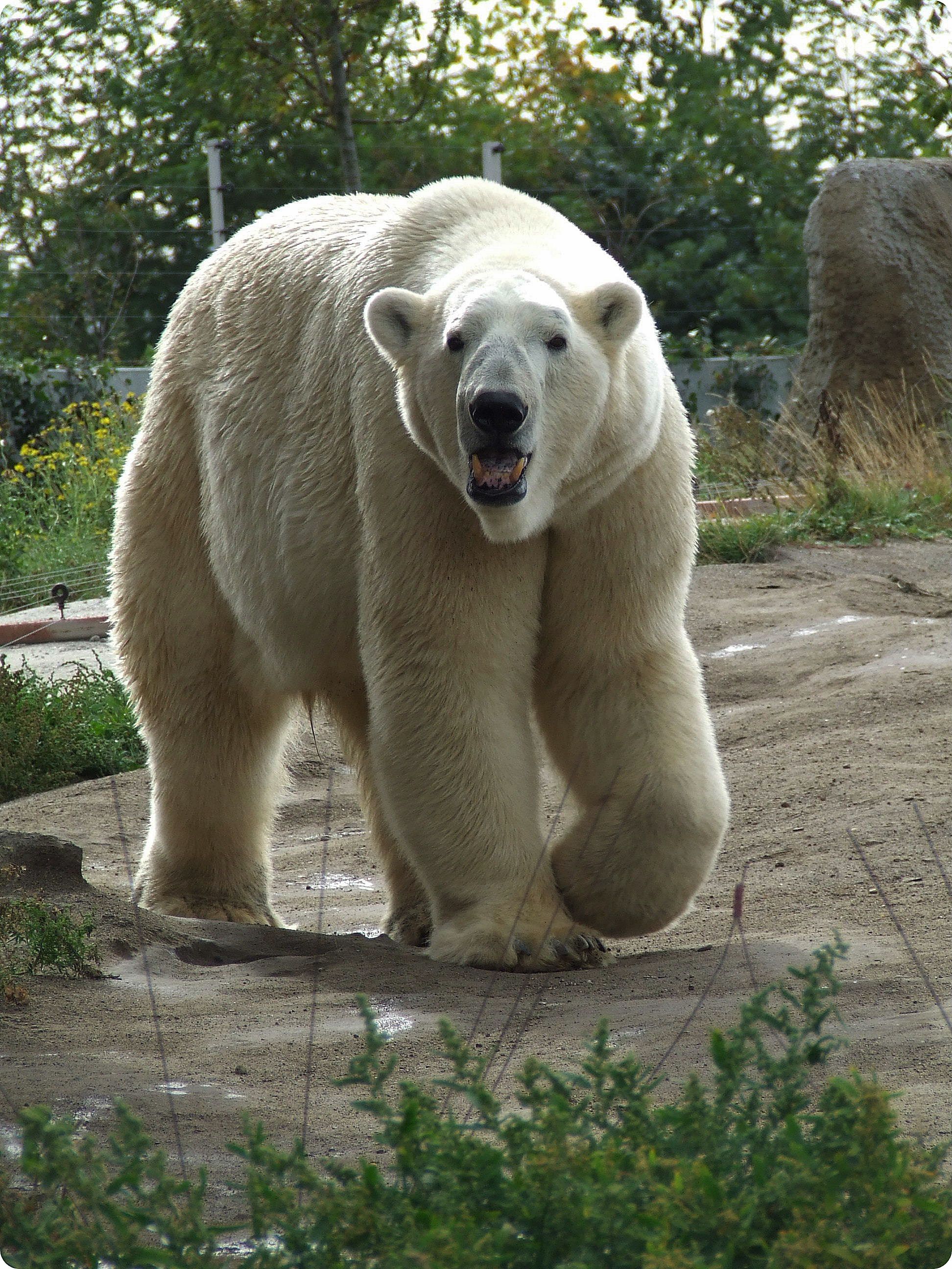 A jegesmedvék területe természetes és egységes tájkép benyomását kelti a látogatókban, hiszen rácsok nem zavarják a szemlélődést: mindkét kifutó frontvonalán széles szárazárok húzódik, melyek szélén elszáradt pázsitfüveknek látszó villanypásztor akadályozza a medvék közeljutását. A kiemelt látványpontok kialakítása során ügyeltek arra, hogy azok mélyebben helyezkedjenek el a kifutón mozgó állatoknál, így a látvány háttere a horizontra tevődve elfedi a szeparáció mesterséges voltát.