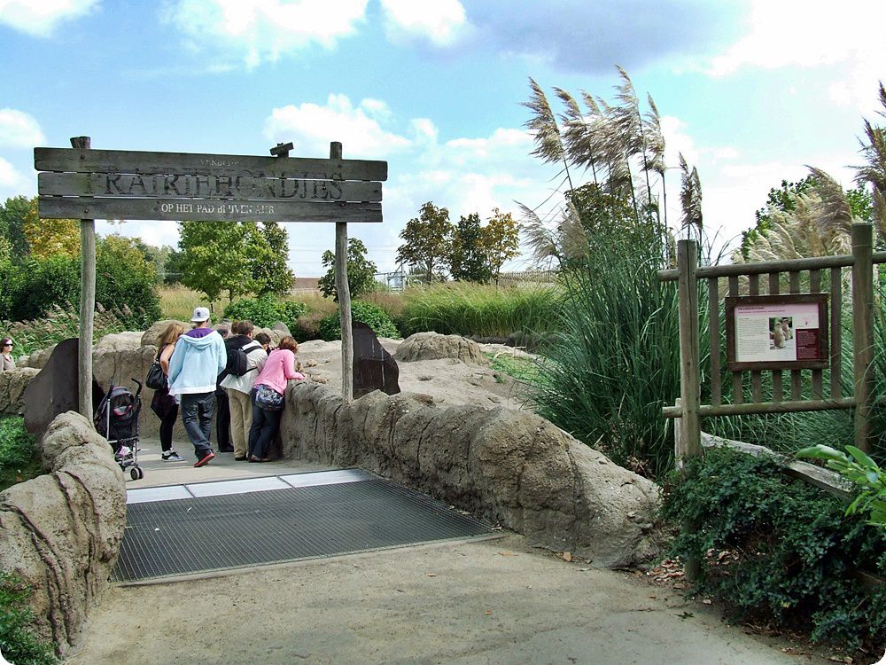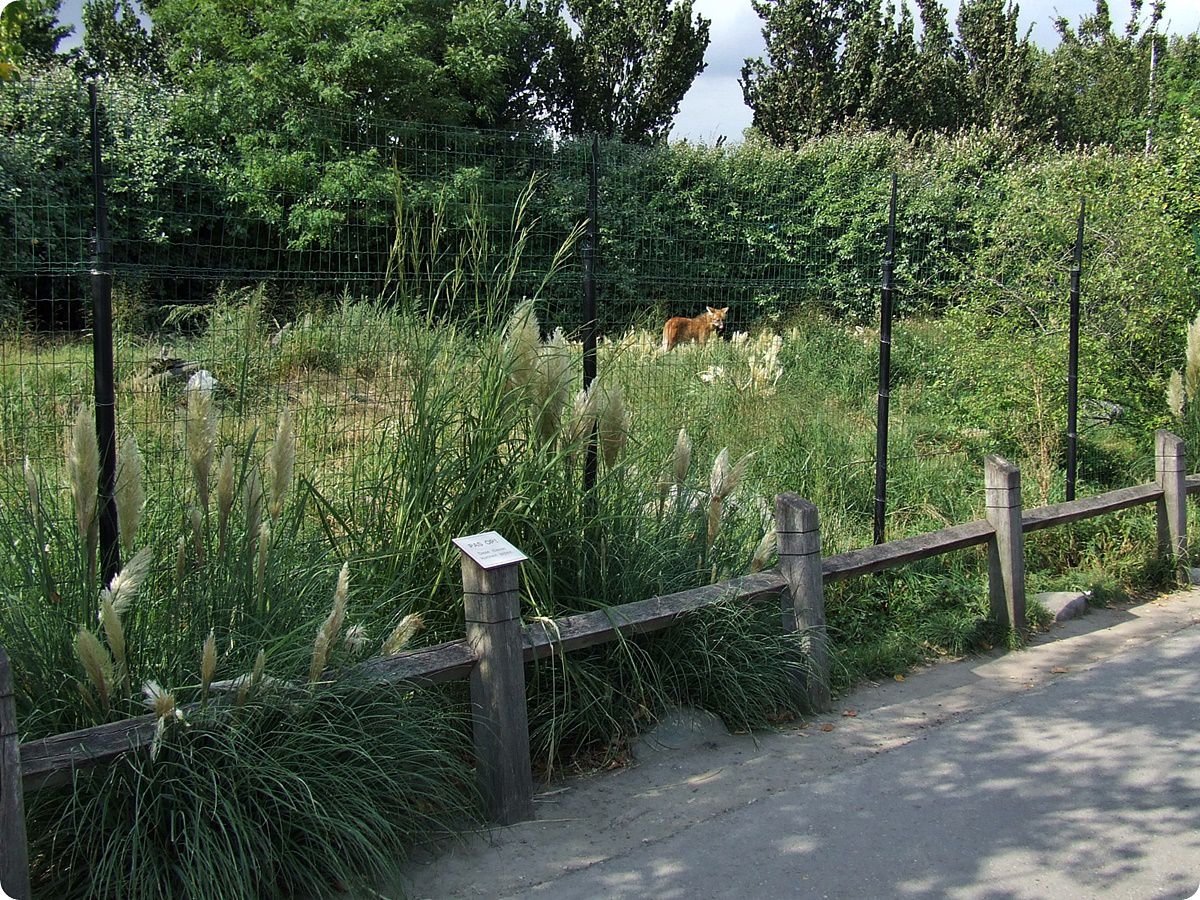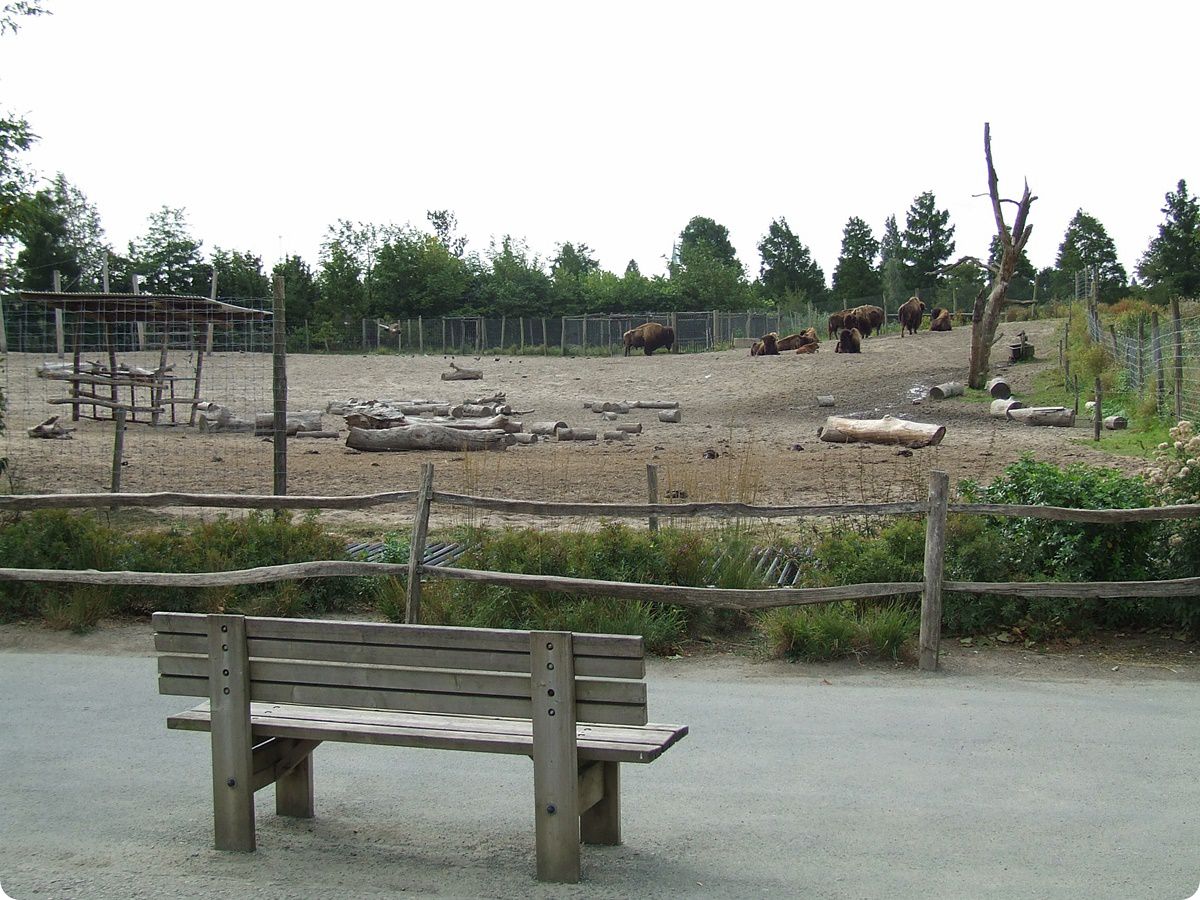A bölények 6200 m² alapterületű kifutójának frontvonalán megszakad a kerítés: egy marharács és néhány szál horizontálisan futó vékony, szinte észrevétlen villanypásztor tartja távol az állatokat a látogatóktól.