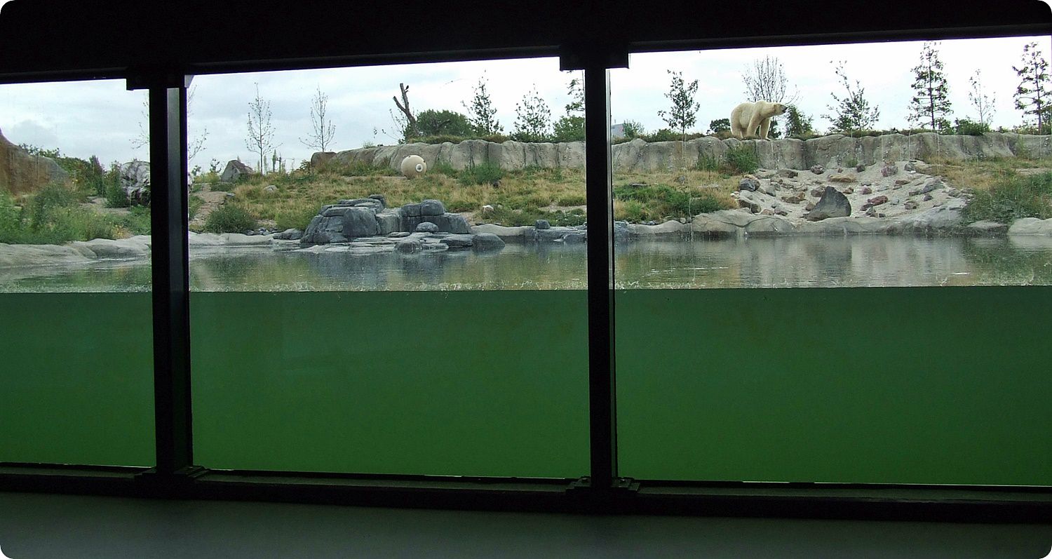 A „jégbarlangnak” nevezett belső kiállítótér számos információt szolgáltat az állatokat veszélyeztető tényezőkről, valamint a kifutókhoz tartozó tekintélyes méretű medencéknél itt nyílik lehetőség az állatok víz alatti úszásának megtekintésére.