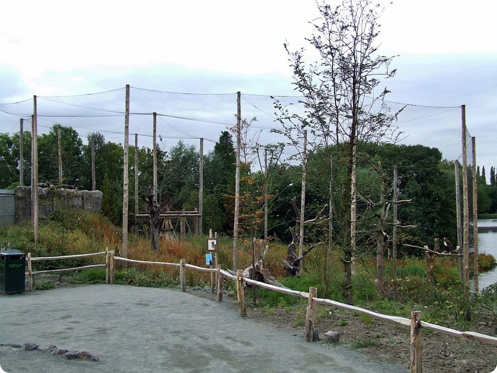A vad tengerimalacok kifutója, háttérben a skarlátíbiszek röpdéjével