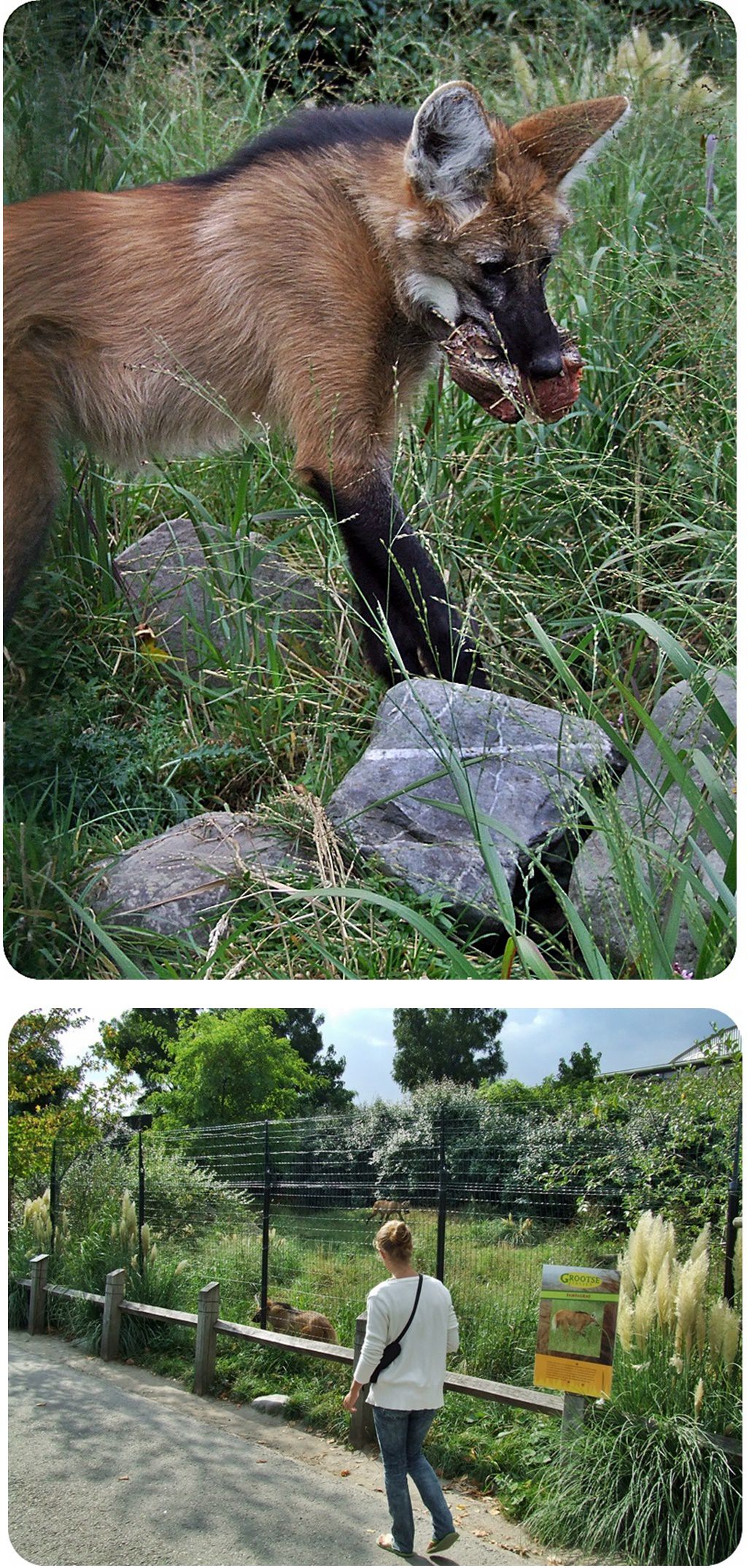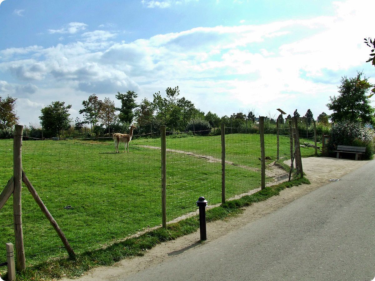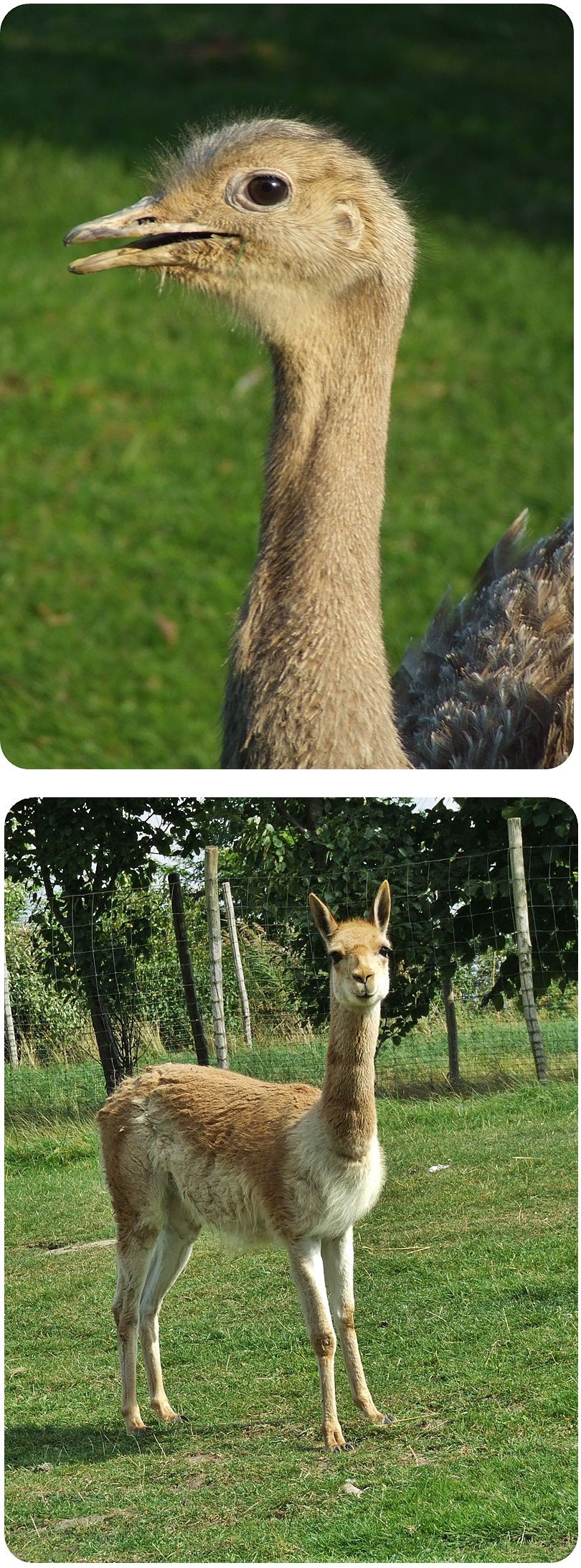 Fent a sörényes farkasok, lent a vikunyák és Darwin-nanduk kifutója látható.