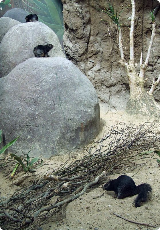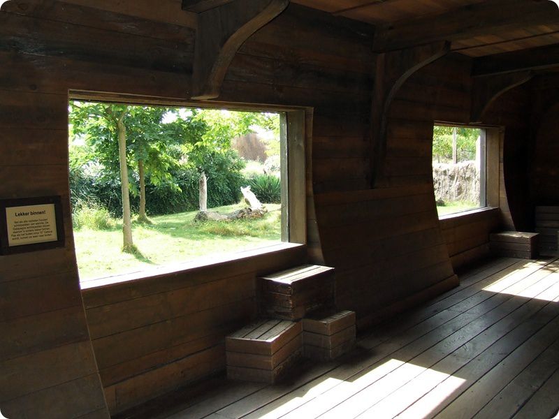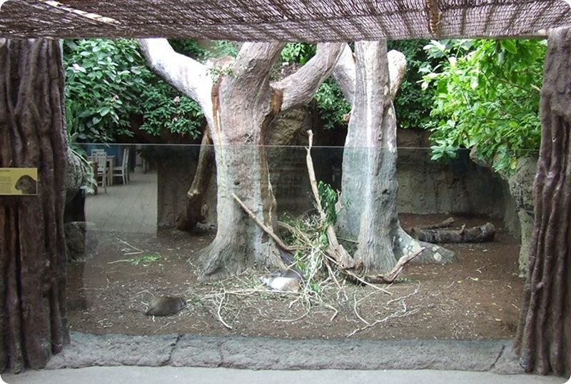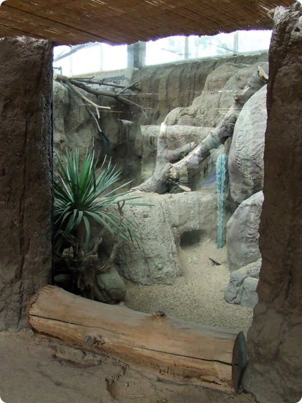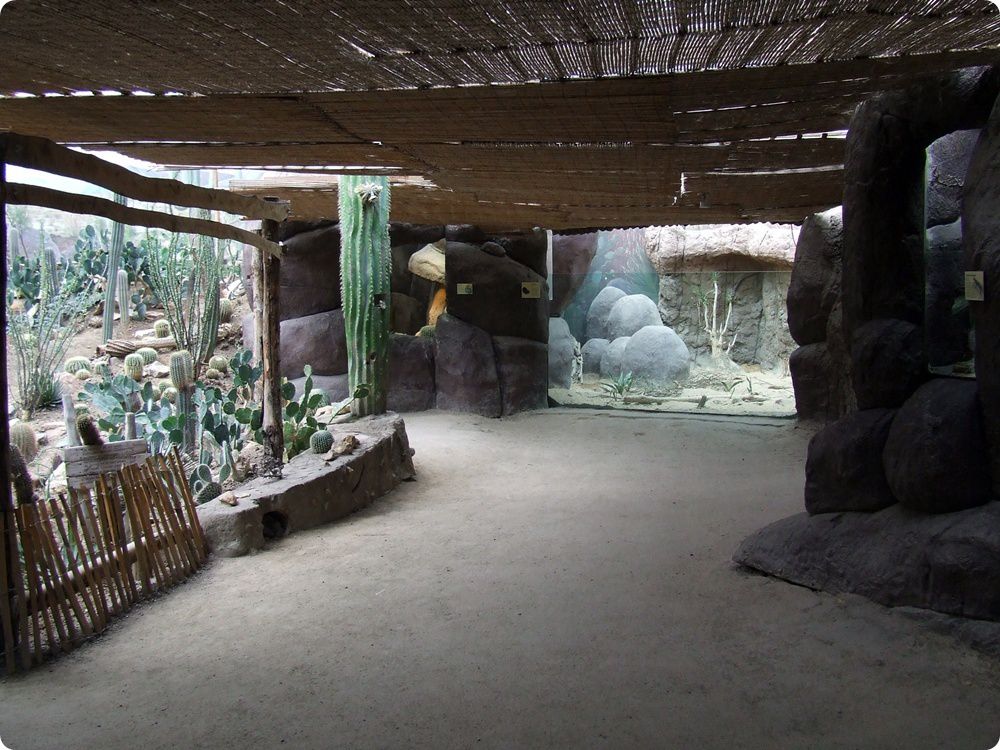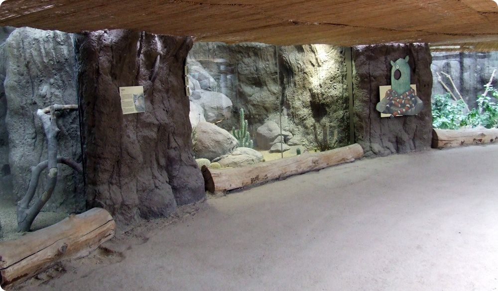 Balra a rókák egyik belsője, jobbra a cortez-tengeri bemutató néhány nagyobb belső állattartó-tere látható.