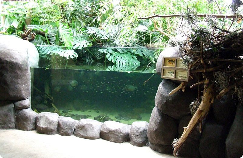 Az Amazon-régió két nagyobb akváriumi bemutatójával ad ízelítőt a trópusi Dél-Amerika halfaunájából. Pizsamalazacok (Leporinus fasciatus), szivárványos guppik (Poecilia reticulata), vitorlás algaevőharcsák (Pterygoplichthys gibbiceps) és vöröshasú piranhák (Serrasmus nattereri) élnek az egyik, míg fekete pakuk (Colossoma macropomum), ezüst baltahasú lazacok v. szekercelazacok (Gasteropelecus sternicla) és vörösfarkú harcsák (Phractocephalus hemioliopterus) úszkálnak a másik akváriumban, mely utóbbiak egy kistermetű krokodilfajjal, a Cuvier-törpekajmánnal (Paleosuchus palpebrosus) osztoznak a víztéren. A meleg trópusok világát elhagyva hajóra szállunk, hogy barangolásunk következő állomására, egy hideg tengeri éghajlattal rendelkező szigetre érkezhessünk, amelyet nevezhetünk a pingvinek birodalmának is…