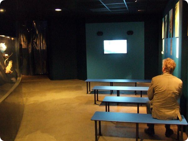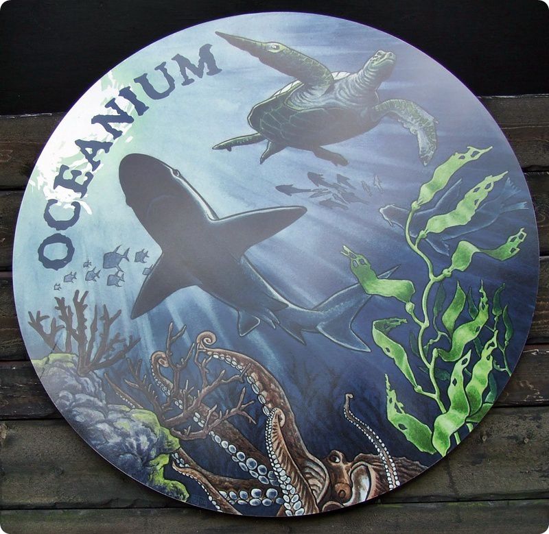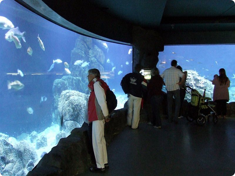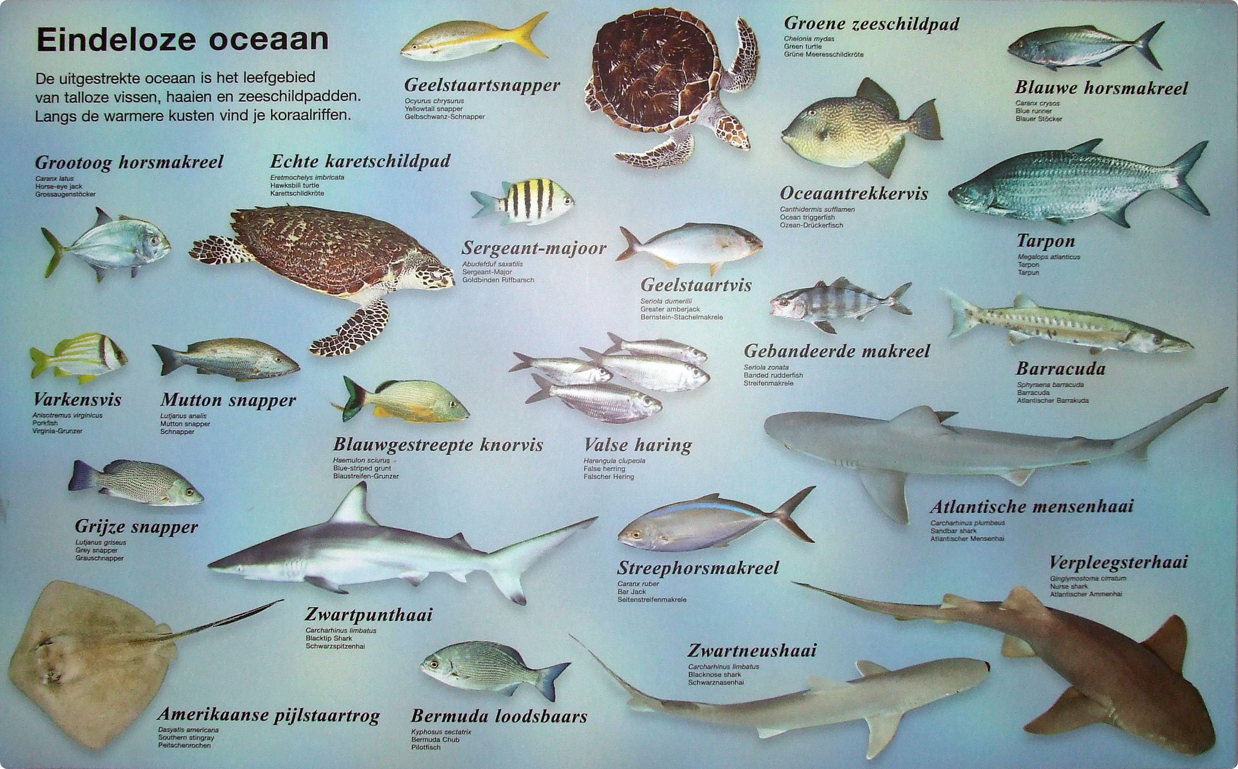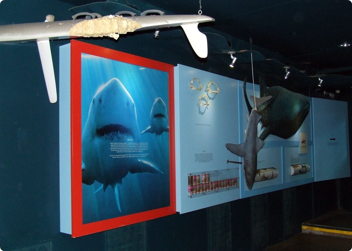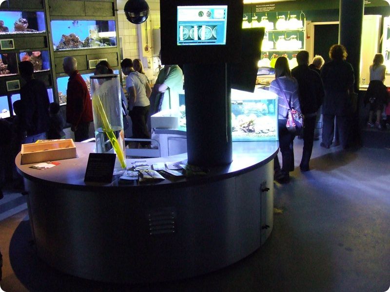 Az Atlanti-óceán medencéjének fajait bemutató nagyméretű, konvencionális információs panel. Számos egyéb ismertető már az érintőképernyős típusba tartozik, mely egy felmérés szerint jóval népszerűbb a látogatók körében.