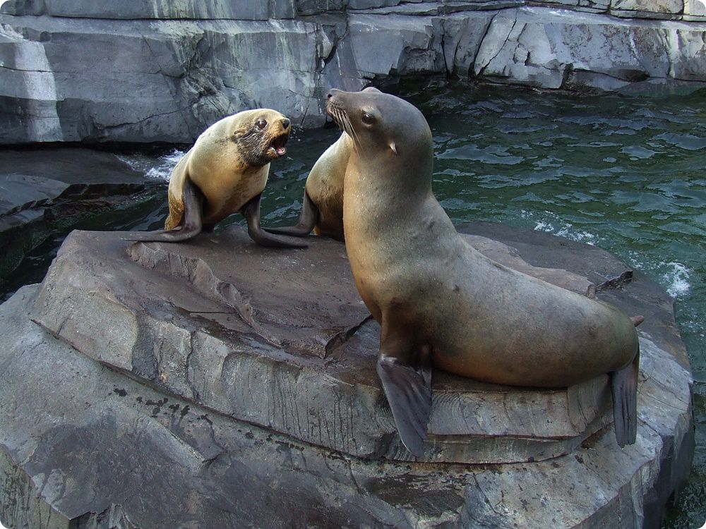 Borjúfóka (Phoca vitulina) és kaliforniai oroszlánfóka (Zalophus californianus)