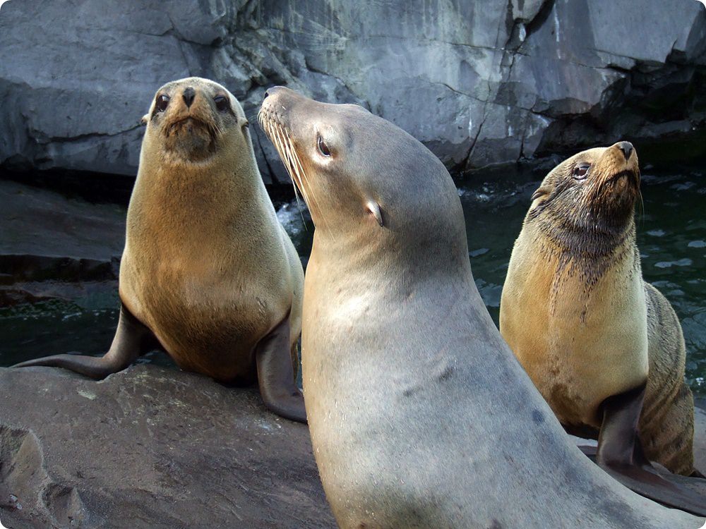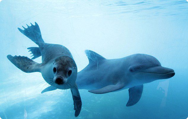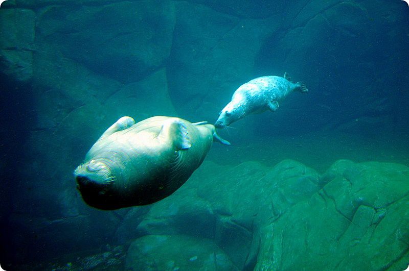 Borjúfókák (Phoca vitulina) és fehér delfinek v. belugák (Delphinapterus leucas)