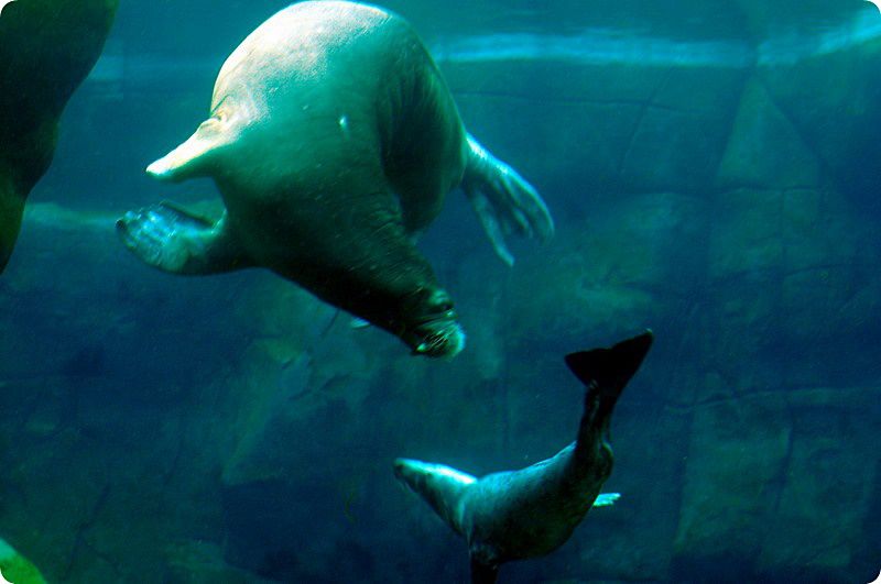 Kaliforniai oroszlánfóka (Zalophus californianus) és ázsai kiskarmú vidra (Aonyx cinerea)
