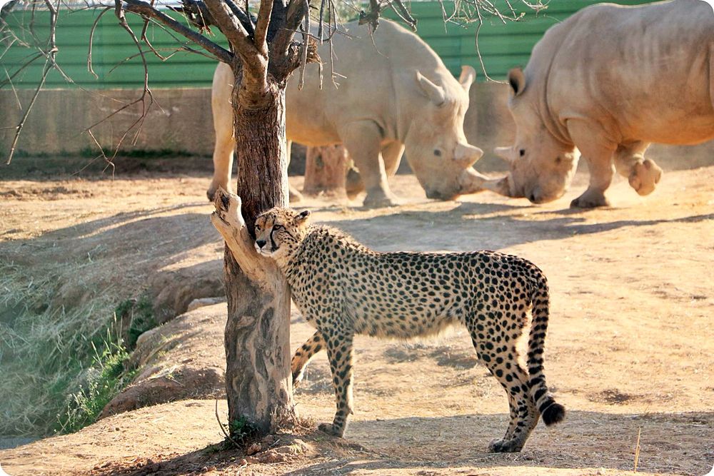 Gepárdok (Acinonyx jubatus) és déli szélesszájú orrszarvú (Ceratotherium simum simum)