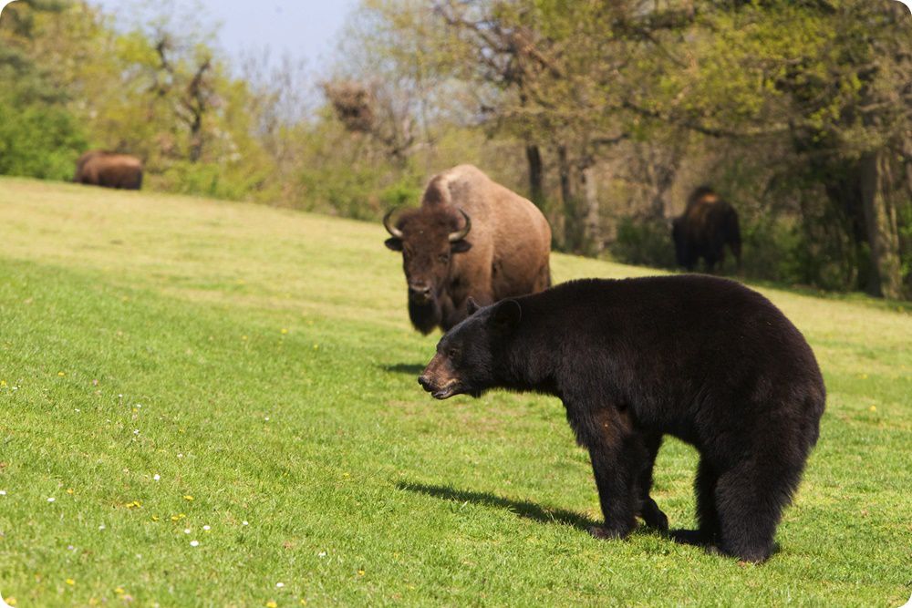 Az emlősök esetében összességében elmondható, hogy a vegyesfajú kifutók elsősorban különböző közepes- és nagytestű növényevő faj összeszoktatásán alapszik. Az afrikai szavannák hangulatát idéző idillisztikus, egymás mellett legelésző patások csapatai az egyik legkorábbi kezdeményezés az állatföldrajzilag is korrekt társaskifutók kialakítására, mely a mai napig az egyik legelterjedtebb élőhely-bemutató az állatkertek világában. Érthető okokból, a ragadozó fajokkal történő társítás jóval ritkább, és észrevehetően ezek közül is elsősorban a kisebb testméretű fajok – mint például kisebb kutyafélék (Canidae), mongúzfélék (Herpestidae), mosómedvefélék (Procyonidae), valamint vidrafélék (Lutrinae) – láthatóak más fajokkal közösen bemutatva. A továbbiakban arra a ragadozók rendjébe tartozó taxonra fogok koncentrálni, melybe a legnagyobb szárazföldi ragadozók is tartoznak: a medvefélék (Ursidae) családjára. Meglepő módon láthatjuk majd, hogy nem is kevés azon intézmények száma, mely valamely medvefaj társaskifutón történő elhelyezésében tapasztalatokkal bír.