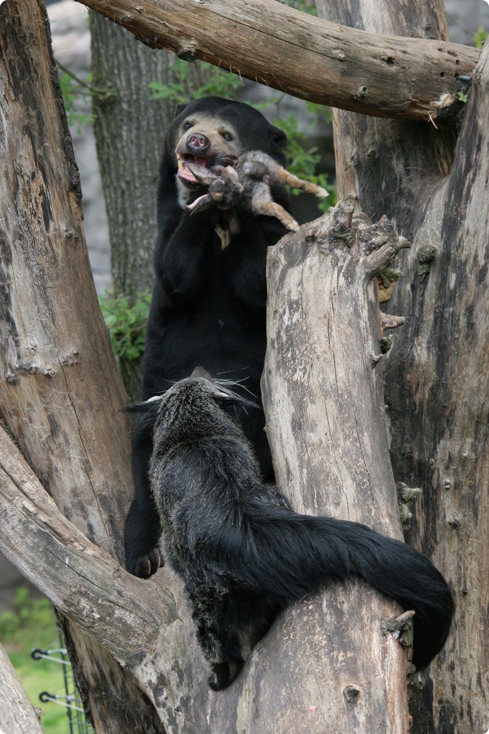 Maláj medve (Helarctos malayanus) és binturong (Arctictis binturong)