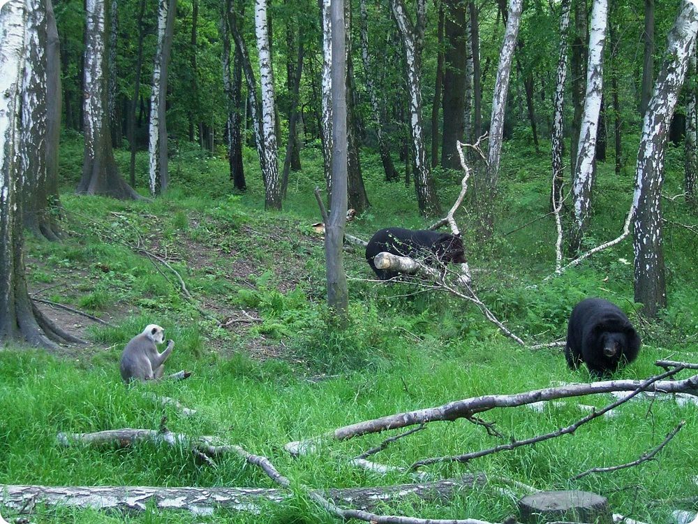 Örvös medve (Ursus thibetanus) és pusztai rókák (Vulpes corsac) az Amersfoort-i Állatkertben