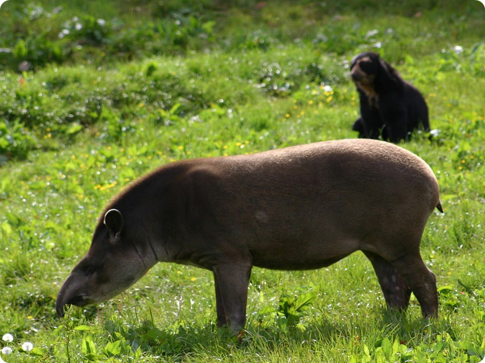 Pápaszemes medve (Tremarctos ornatus) vízidisznók (Hydrochoerus hydrochaeris), ázsia kiskarmú vidrák (Aonyx cinereus), egy dél-amerikai tapír (Tapirus terrestris), valamint egy feketefejű pókmajom (Ateles fusciceps) társaságában