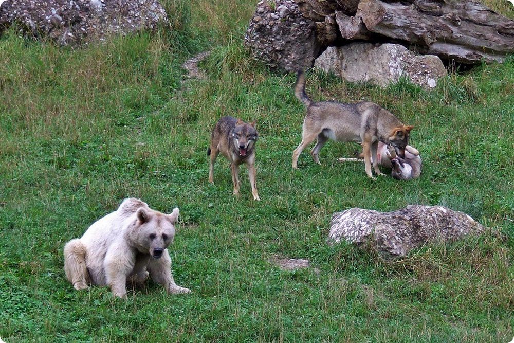 BAUMANN, A. & WEHRLE, M. 2011. Das Zusammenleben von Bär und Wolf in einer neuen Gemeinschaftsanlage – Beschrieb über 1½ Jahre. In: Der Zoologische Garten 80(3):93-105.