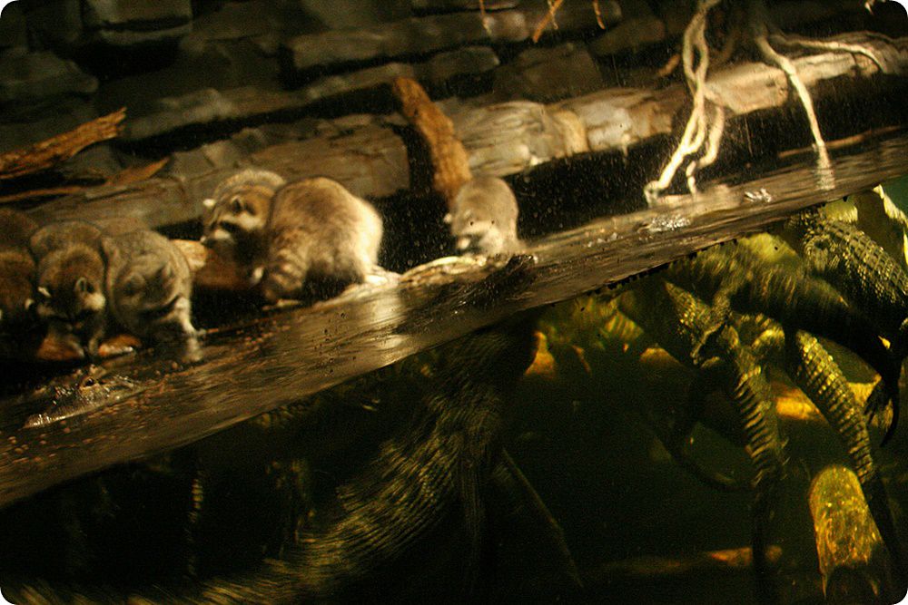 A Riyadh Zoo észak-amerikai mosómedvéi külön kifutót birtokoltak, ám a szomszédos agutikifutóból a fehérpamacsos selyemmajmok átjárhattak azokhoz (HAMMER 2002).