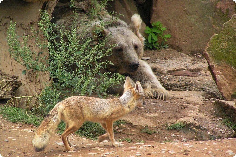 A ragadozó & ragadozó társítás egyik leggyakoribb és egyben "klasszikus" példája a barnamedve & szürke farkas fajkombináció