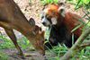 The most frequent association is the Red Panda & Reeves’ Muntjac coexistence which has been tried in many European and North American institutions. In Nürnberg the two species lived together in a 585 m² sized enclosure with several living trees, bushes and grass on natural ground. The 20 m² indoor facility with two compartments permanently accessible for both species, but only one equipped with climbing structures. The muntjacs were habituated first to the enclosure...