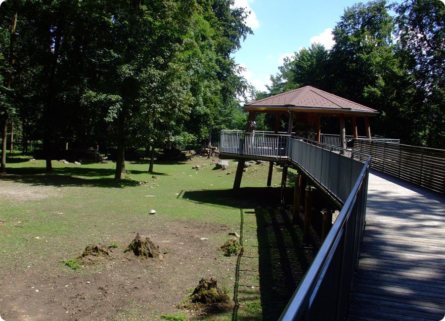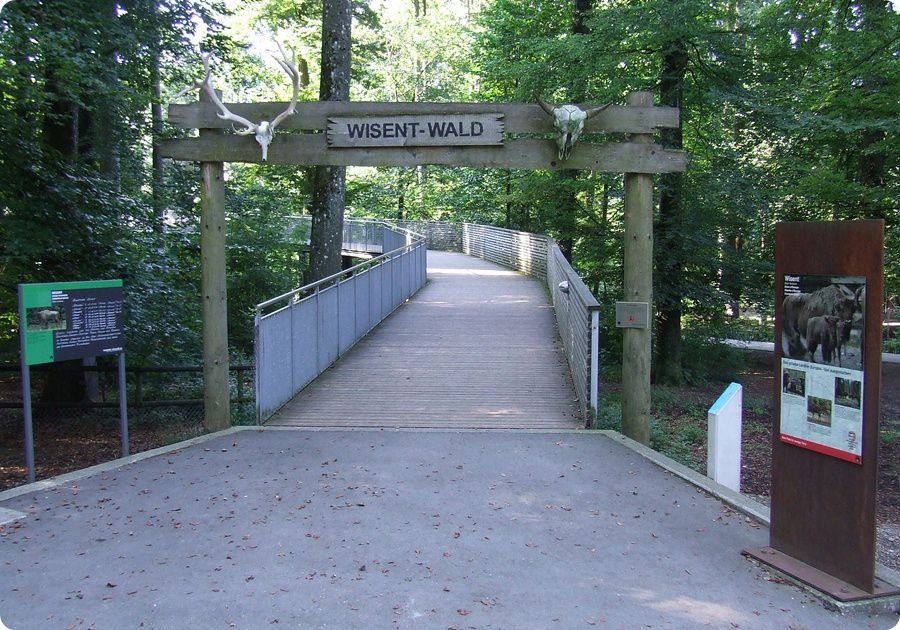 Az állatpark egyik legmarkánsabb bemutatója az ún. Bölényerdő. Az intézmény területének egyharmadát kitevő, öt hektáros terület egy lekerített természetes erdőrész, melyen az európai bölények (Bison bonasus) kisebb csapata gímszarvasokkal (Cervus elaphus hippelaphus) osztozik. Az itt élő állatokat az erdőbe hosszan benyúló emelt sétaútról tekinthetjük meg, mely végén egy megfigyelő leshely került kialakításra. A bölénykifutó szomszédságában élnek a park hiúzai (Lynx lynx lynx), melyek területének alsó része már a folyóparti bemutatókhoz kapcsolódik.