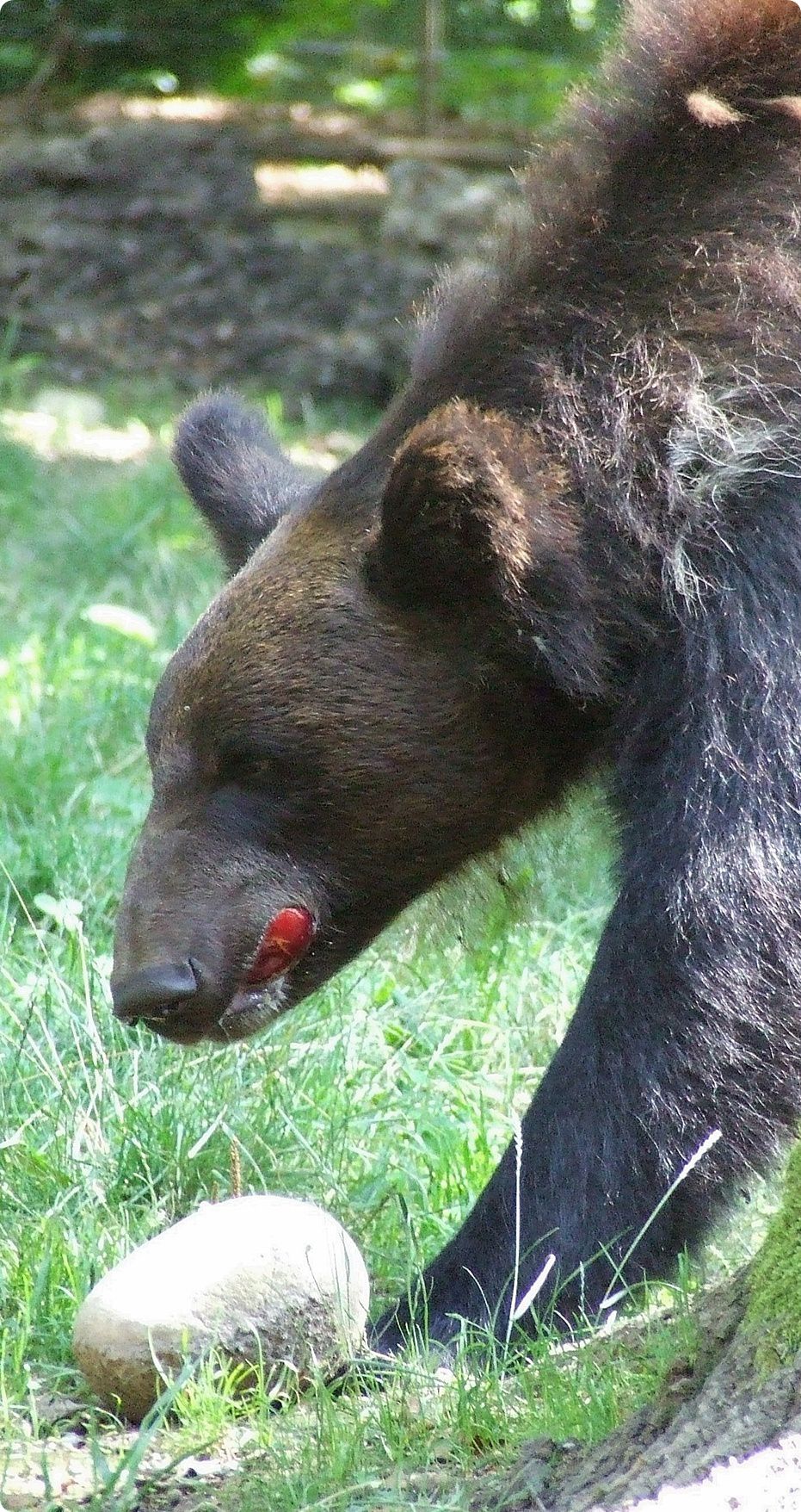 Egy fogságban ritkán látható barnamedve alfaj, Ursus arctos lasiotus (balra), a medvekifutó egy részlet (jobbra)