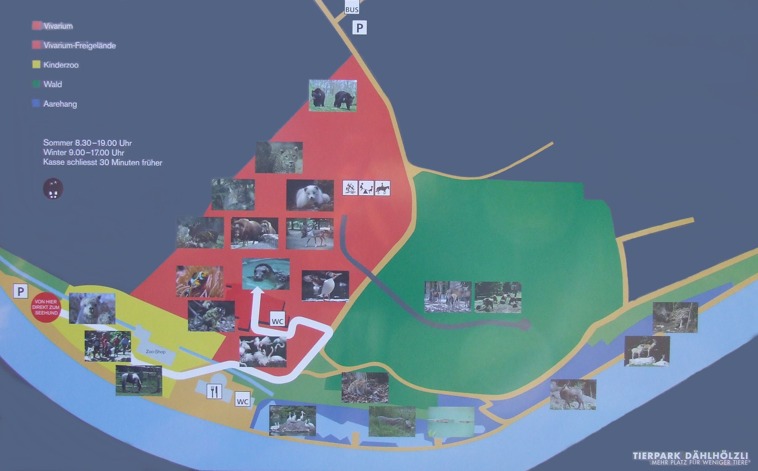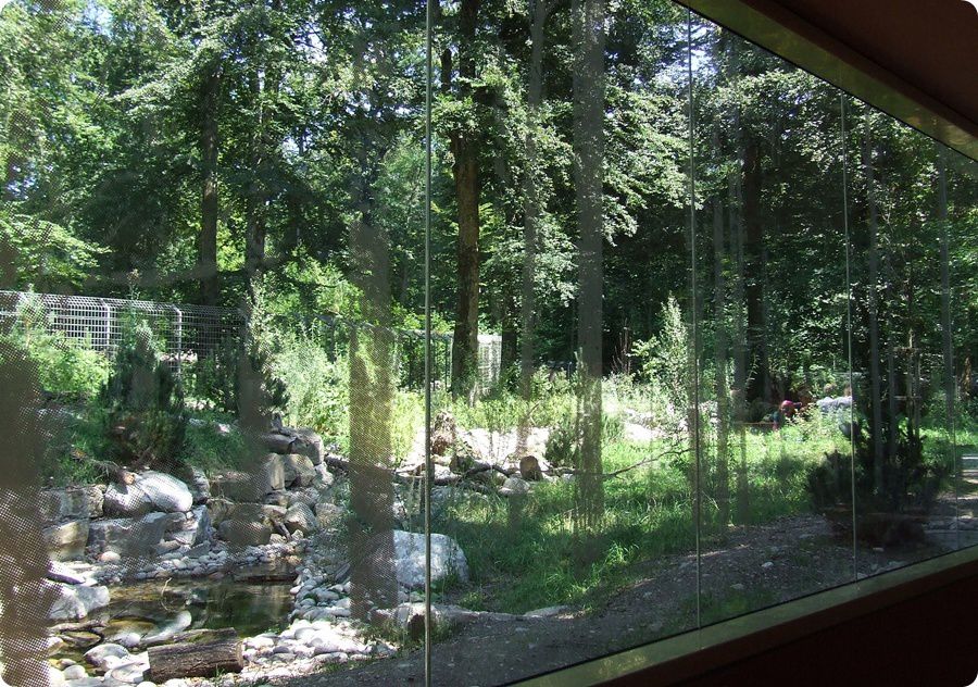 Az Aare mentén létesített folyóparti bemutatók igazán parádésak, ahol különféle vízimadarak mellett európai vidrák (Lutra lutra) és eurázsiai hódok (Castor fiber) élnek szinte féltermészetes körülmények között. E bemutatók a hiúzkifutóval együtt másfél hektáron terülnek el. A folyóparton felfelé sétálva további patásfajok tarkítják a gyűjteményt, ahol alpesi zergék (Rupicapra rupicapra rupicapra) és kőszáli kecskék (Capra ibex) akrobatikus mozgásában gyönyörködhetünk a domboldalon kialakított kifutóikban.