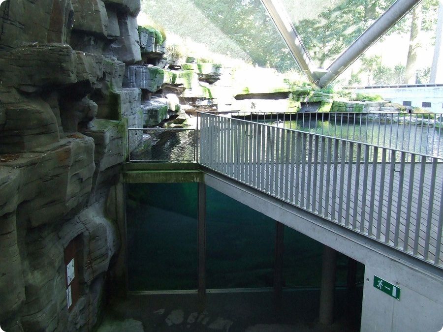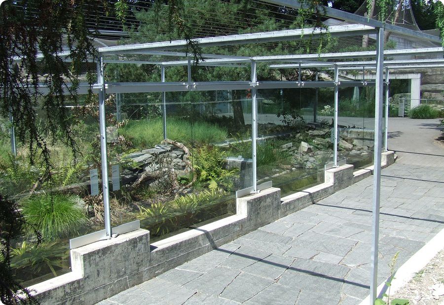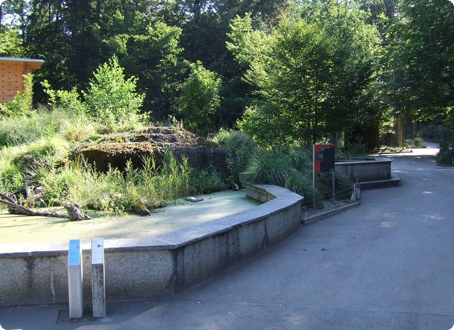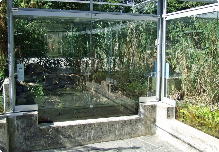 Tavaly nyáron tett látogatásunk idején éppen közepén tartott a Vivárium részleges átépítése és felújítása, így e bemutatót nem volt alkalmunk megtekinteni. Az újraálmodott üvegcsarnok azonban a múlt év novemberétől ismét fogadja a látogatókat, így néhány szóban érdemes megemlíteni ennek gyűjteményét. Számos hal-, kétéltű-, hüllő-, madár- és emlősfaj kerül itt bemutatásra, láthatunk itt pl. tompaorrú krokodilokat (Osteolaemus tetraspis), orrszarvú leguánokat (Cyclura cornuta cornuta), jávai kancsilokat (Tragulus javanicus), rövidfülű elefántcickányokat (Macroscelides proboscideus) és gyapjasfejű tamarinokat v. Liszt-majmocskákat (Saguinus oedipus) egyaránt. Az igazi ritkaságok azonban a gerinctelenek körül kerülnek ki, mint pl. egy levélvágó hangyafaj (Acromyrmex octospinosus), ám az egzotikus gyűjtemény legnagyobb kuriózuma kétségkívül egy afrikai termeszfaj, a Macrotermes jeanneli. Termeszeket mindössze néhány helyen láthatunk Európában, s a berni kolónia további különlegessége, hogy ez volt első sikeres kísérlet egy termeszvár természetes úton történő kiépítésére állatkerti körülmények között. A témával kapcsolatban egy részletes cikket is olvashatunk a Der Zoologische Garten egy korábbi lapszámában (LEUTHOLD, R. H., TRIET, H. & SCHILDGER, B. 2003. Husbandry and breeding of African Giant Termites (Macrotermes jeanneli) at Berne Animal Park. Zool. Garten N. F. 74 (2004) 1, S. 26-37).