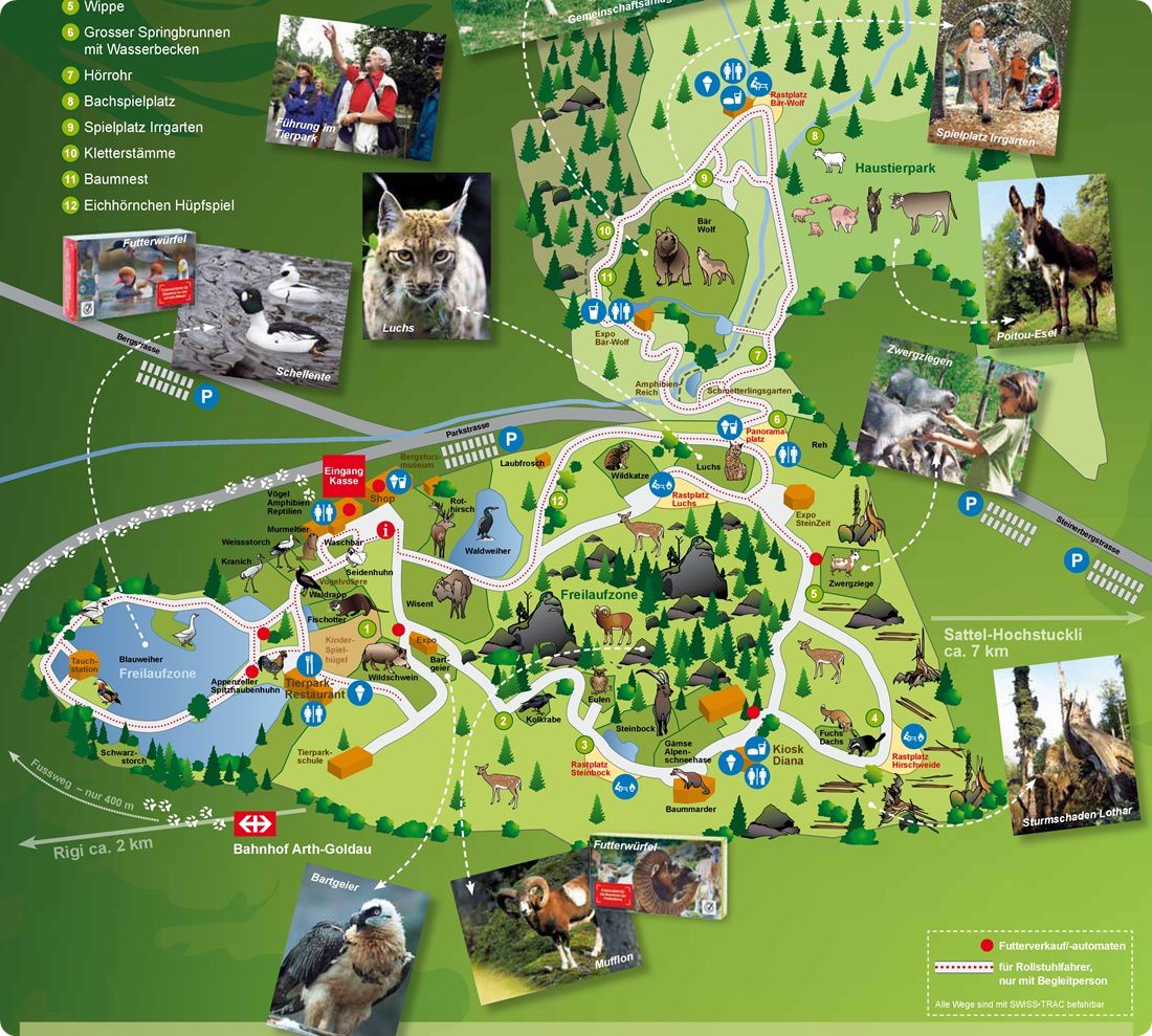 A jelentősebb svájci állatgyűjtemények meglátogatása után egy vadasparkot is szerettünk volna megtekinteni, mely intézménytípus szintén meghatározó a hegyekkel szabdalt országban. Előzetes informálódás alapján egy színvonalas bemutatóra, a Goldaui Vadasparkra (Natur- und Tierpark Goldau) esett választásunk, mely a hatodik, s egyben utolsó állomása volt Svájcban tett állatkertes körutunknak.