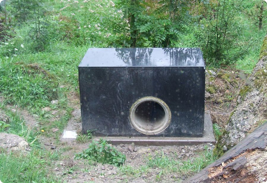 A hím és nőstény vidra szomszédos kifutókban élnek. A felvétel az egyik kifutórészt mutatja.