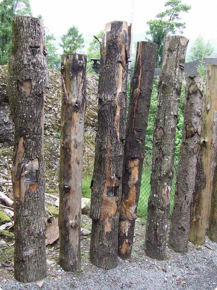 A felvételen látható fatörzsekben számos érdekesség van elrejtve e madarak biológiájával kapcsolatban: koponya, toll, köpet…