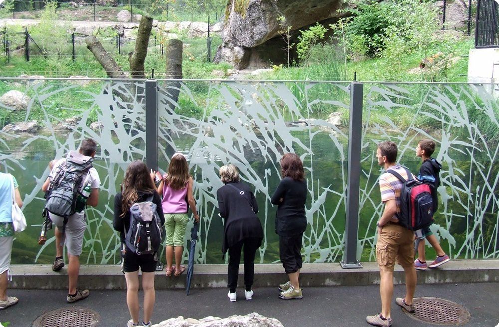 A vidrák víz alatti úszása üvegen keresztül is megtekinthető. A páncélüveg sajátossága, hogy az üvegtáblák között szitanyomással készült vízinövény sziluettek láthatóak.