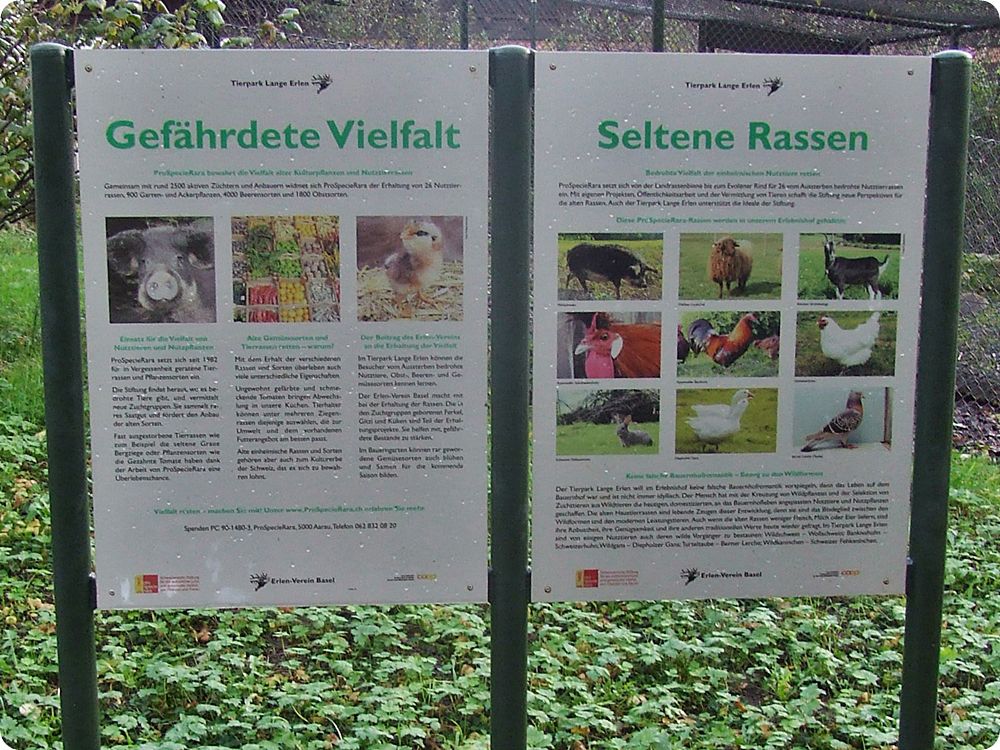 A honos vadállatfajok bemutatása mellett a park újabb és szintén fontos szerepvállalása a kihalófélben lévő háziállatok tenyésztése a ProSpecieRara alapítvánnyal együttműködve. A ProSpecieRara egy svájci nonprofit alapítvány, amelyet 1982-ben alapítottak Sankt Gallenben. Az időközben már bázeli székhellyel rendelkező alapítvány célja az állat- és növényvilág genetikai sokféleségének megőrzése, elsősorban a veszélyeztetett haszonállat-állományok és kultúr/haszonnövények megmentése a kipusztulástól. Jelenleg 32 különböző állatfajta tenyésztése folyik tervszerűen az alapítványi munka keretében, melyek közül számos a bázeli vadasparkban is megtekinthető. Jelenleg – valamint a közelmúltban – láthatunk/láthattunk tehát az itteni Tanyaudvarban a házityúkok (Gallus gallus f. domestica) közül svájci tyúkot (Schweizerhuhn), appenzelleri szakállast (Appenzeller Barthuhn), appenzelleri hegyesbóbitást (Appenzeller Spitzhaubenhuhn), háziludak (Anser anser f. domestica) közül diepholzi ludat (Diepholzer Gans), házinyulak (Oryctolagus cuniculus f. domestica) közül svájci háromszínű tarkát (Schweizer Dreifarben-Kleinschecke), házikecskék (Capra aegagrus f. hircus) közül bündneri kecskét (Bündner Strahlenziege), házijuhok (Ovis orientalis f. aries) közül wallisi juhot (Walliser Landschaf) és házisertések (Sus scrofa f. domestica) közül pedig fecskehasú mangalicát (Wollschwein). Érdemes megjegyezni, hogy sem a kecskék, sem a disznók nem hagyományos parasztudvari vagy tanyasi ólakban, hanem tavacskákkal, kisebb vízfolyásokkal rendelkező, füves szabadkifutókon élnek. A kecskék egyik kifutóján továbbá a látogatók is átsétálhatnak.