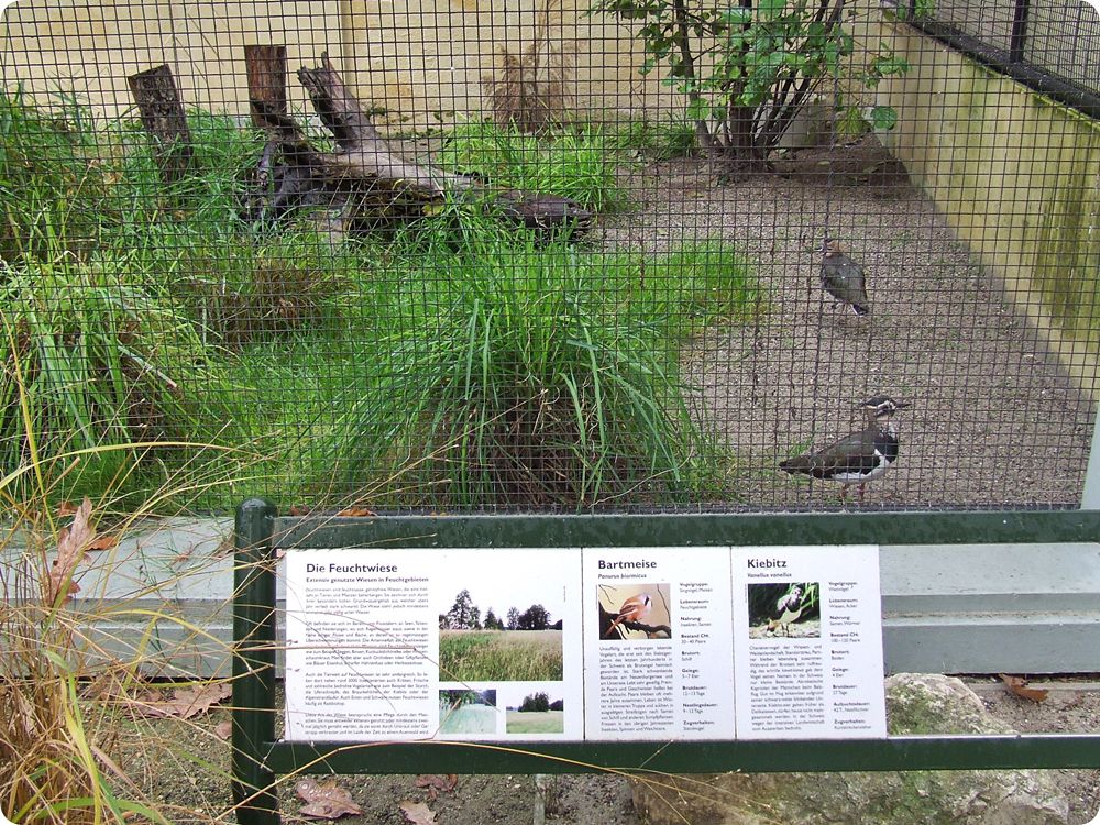 A park szabadon élő madárfajai például a kék páva (Pavo cristatus), szürke gém (Ardea cinerea) és fehér gólya (Ciconia ciconia). A madár-bemutatók egy részét a központi terület hagyományos röpdesora adja, ahol a színvonalasan berendezett volierek egy-egy élőhelyet/életteret jelenítenek meg. Egy-egy röpde jellemzően több madárfaj bemutatására szolgál: a Jura-hegység erdeiből láthatunk itt kuvikot (Athene noctua) és vörös foglyot (Alectoris rufa), az erdőszéli bozótos területekről füleskuvikot (Otus scops) és foglyot (Perdix perdix), a vízpartszéli élőhelyekről kis vöcsköt (Tachybaptus ruficollis), guvatot (Rallus aquaticus) és törpegémet (Ixobrychus minutus), a síkvidéki vizes rétekről/nádasokból bíbicet (Vanellus vanellus) és barkóscinegét (Panurus biarmicus), a parkokból süvöltőt (Pyrrhula pyrrhula) és tengelicet (Carduelis carduelis), a kultúrsztyeppéről és mezőgazdasági területekről pedig vadgerlét (Streptopelia turtur) és seregélyt (Sturnus vulgaris). Ezeken túlmenően piroslábú cankó (Tringa totanus), fürj (Coturnix coturnix), csíz (Spinus spinus), zöldike (Chloris chloris), szajkó (Garrulus glandarius), jégmadár (Alcedo atthis) és nádi sármány (Emberiza schoeniclus) egyaránt látható a gyűjteményben. A fácánok (Phasianus colchicus) és uhuk (Bubo bubo) már nagyobb, a kert más-más pontján kialakított röpdéiben kaptak elhelyezést, míg a szürke darvak (Grus grus) az egyik szarvaskifutón élnek.