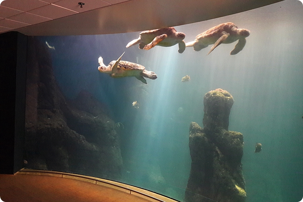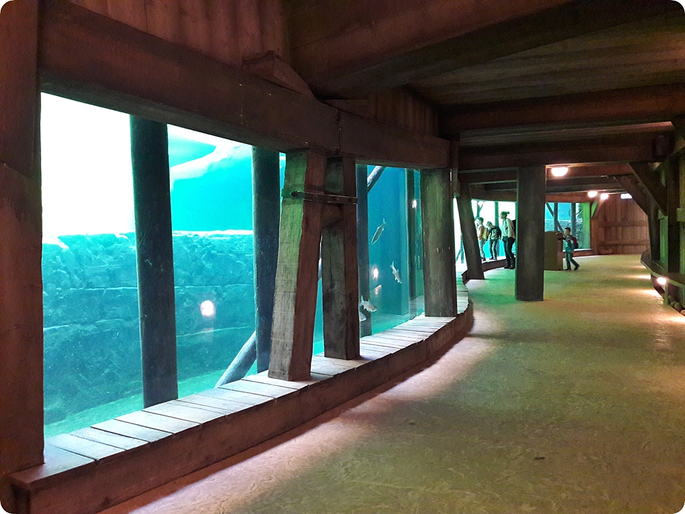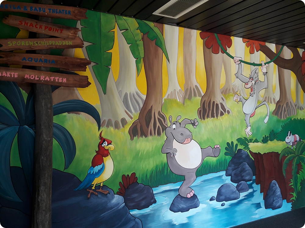 Most azonban térjünk ki röviden az Animazia tematikus, állatbemutatók szerinti bejárásához, hiszen a fent említett, beltéri „tematikus játszóterek” mellett jónéhány állatfaj egyaránt otthonra lelt a komplexumban. A Serenga Wallaby-domb elnevezésű bemutatójánál a fő látogatói útvonalról lekanyarodva érkezünk a bejárathoz, aminek jobb oldalán korábban házi tengerimalacok (Cavia aperea f. porcellus) üdvözölték a fiatal látogatókat. Belépve egy falfestményről üdvözöl bennünket Neila és Babu, s egy fatábla szövegezése ismerteti a „látványosságokat”. Elsőként a játszóház kiemelt „állatos attrakciója”, egy jókóra tengeri akvárium előtt időzhetünk, ahol ezüstös díszholdhalak (Monodactylus argenteus), árgushalak (Scatophagus argus) és ostorhalak vagy zászlós korallhalak (Heniochus acuminatus) láthatóak, de a medence igazi sztárjai a közönséges levesteknősök (Chelonia mydas). A faj tartásának hosszú hagyománya van Emmenben, az 1976-os kelésű hím és három nőstény egyed a rákövetkező évben érkezett a hardwerwijki Dolfinariumból, s azóta igen tekintélyes méretűre növekedtek. 2020 nyarán az egyik, közel 140 kg testtömegű nőstény az osztrák Zoo und Aquazoo Schmiding intézménybe költözött. Az épületben beljebb haladva egy további akvárium-bemutató is megtekinthető, ahol többnyire kisebb medencékben számos halfaj látható, mint például: tanganyikai tilápia (Oreochromis tanganicae), gyöngyszínű bölcsőszájúhal (Herichthys cyanoguttatus), vöröstorkú bölcsőszájúhal (Thorichthys meeki), kénfejű sügér (Otopharynx lithobates), Malawi neonsügér (Chindongo demasoni), törpe nyasszai zebrasügér (Chindongo saulosi), Chipoka-türkizsügér (Melanochromis chipokae), kazuárfejű sügér (Steatocranus casuarius), vértestű sügér (Copadichromis borleyi), törpe zebrasügér (Cynotilapia afra), Salvin tarkasügere (Trichromis salvini), szemfoltos tarkasügér (Heros efasciatus), tűzfejű tarkasügér (Vieja melanura), feketeöves tarkasügér (Vieja maculicauda), Hongi sügér (Labidochromis spec. "Hongi"), citromsügér (Amphilophus citrinellus), pávasügér (Nimbochromis venustus), leopárdsügér (Nimbochromis livingstonii), hosszúuszonyú páncélosharcsa (Sturisomatichthys festivus), fehérpettyes antennásharcsa (Ancistrus dolichopterus), tigris tányéralgázó (Sewellia lineolata), óriás algaevő hal (Hypostomus plecostomus), kongólazac (Phenacogrammus interruptus), mexikói kardfarkú hal (Xiphophorus hellerii), Boeseman kalászhala (Melanotaenia boesemani), királygramma (Gramma loreto), törpe gurámi (Trichogaster lalius), fekete tetra (Gymnocorymbus ternetzi), rózsás díszmárna (Pethia conchonius), bíborfejű díszmárna (Pethia nigrofasciata), öves díszcsík (Chromobotia macracanthus), vörös neonhal (Paracheirodon axelrodi), moszatevő márna (Gyrinocheilus aymonieri), csíkos csuka (Aplocheilus lineatus), vöröshasú pirája (Pygocentrus nattereri), korábban továbbá aranysügér (Labidochromis caeruleus) és császárlazac (Nematobrycon palmeri). A kisebb tengeri medencék fajai a követezőek: sárgaszemfoltos doktorhal (Ctenochaetus strigosus), sárgauszonyú doktorhal (Acanthurus xanthopterus), sárgasávos tűhal (Dunckerocampus pessuliferus), lángvörös császárhal (Centropyge loricula), sárgaöves császárhal (Pomacanthus maculosus), kardinálishal (Pterapogon kauderni), közönséges bohóchal (Amphiprion ocellaris), Clark-bohóchal (Amphiprion clarkii), zászlós tündérsügér (Pseudanthias squamipinnis), barna korallsügér (Chromis chromis), fecskefarkú korallsügér (Acanthochromis polyacanthus), korábban pedig sárga doktorhal (Zebrasoma flavescens), szemfoltos pillangóhal (Chaetodon auriga), rókafejű nyúlhal (Siganus vulpinus), fehérfoltos gömbhal (Arothron hispidus), tehénhal (Lactoria cornuta), tisztogatóhal (Labroides dimidiatus), csíkos késhal (Aeoliscus strigatus), párduc sügér (Chromileptes altivelis), tűzhal (Pterois volitans) és denevérhal (Platax orbicularis). A kétéltűeket egy faj, mexikói axolotl (Ambystoma mexicanum) képviseli.