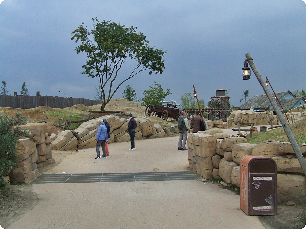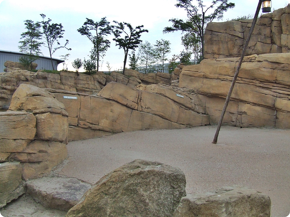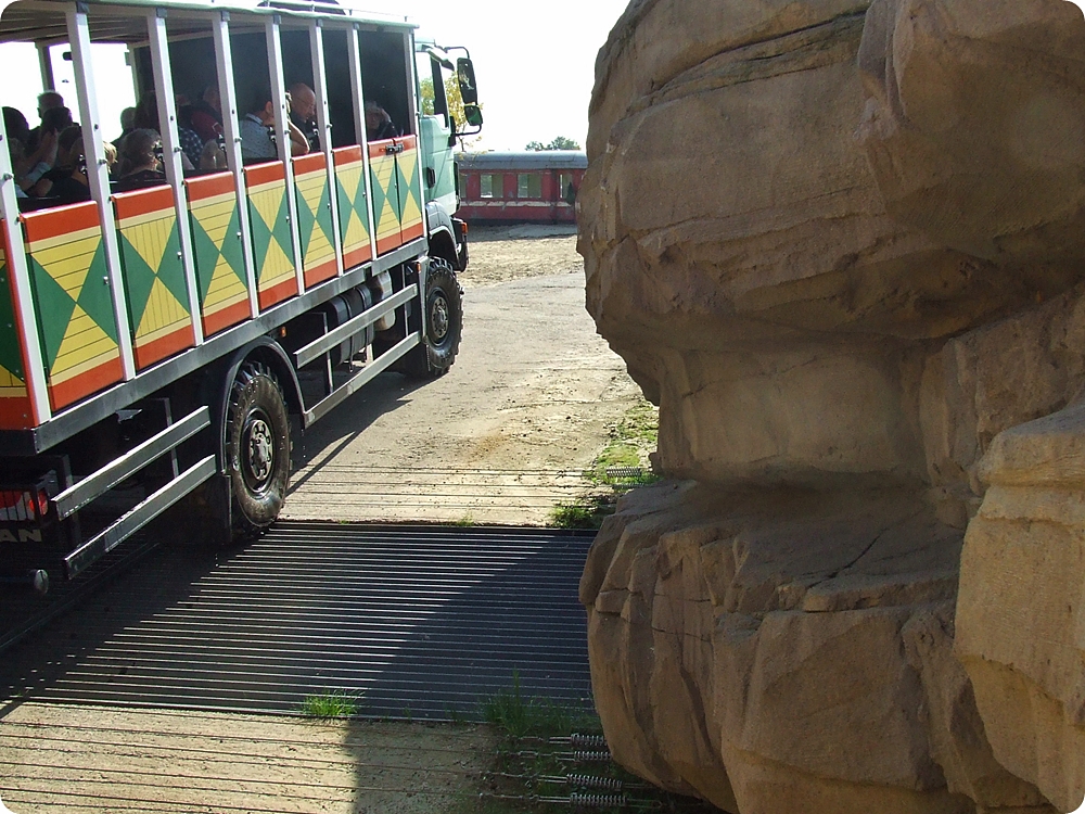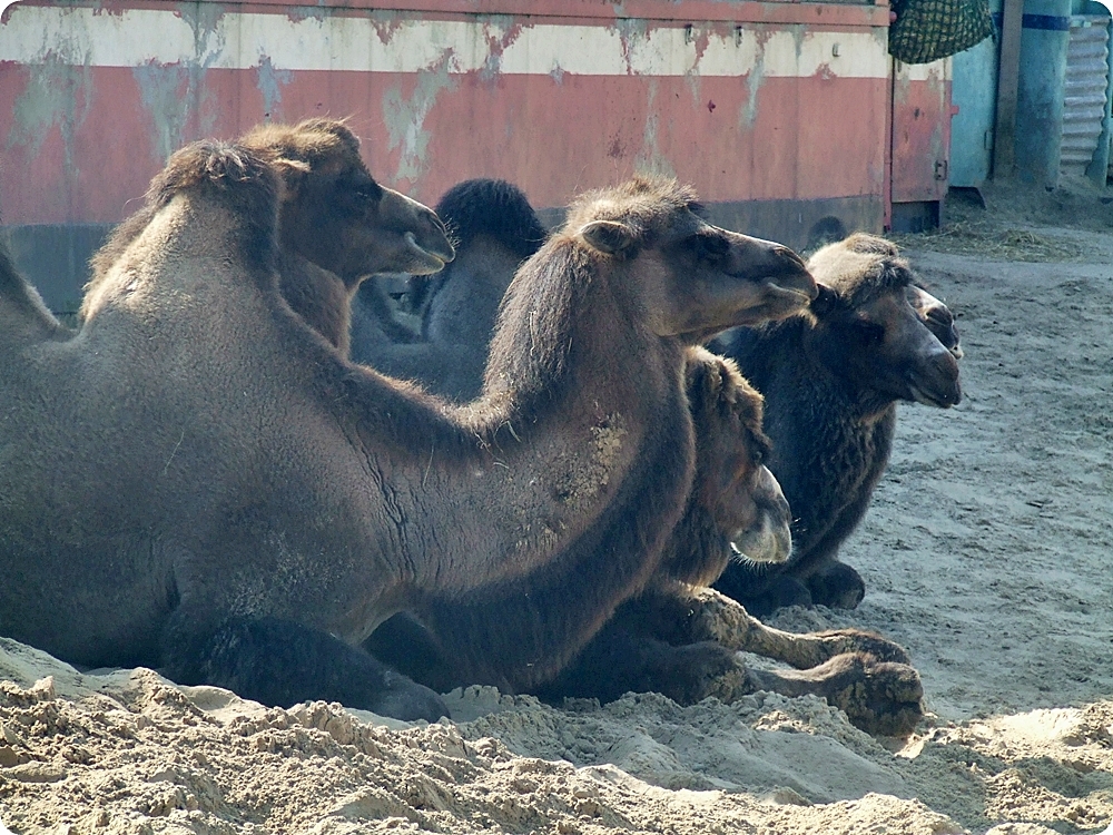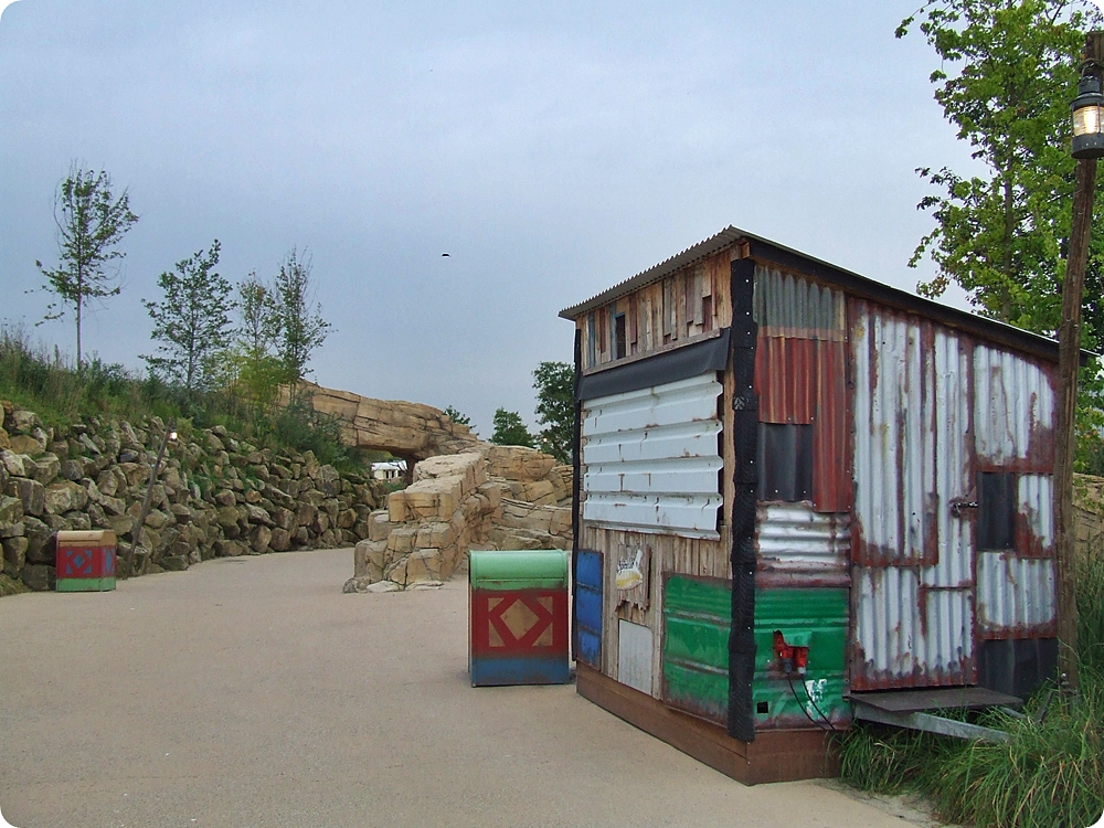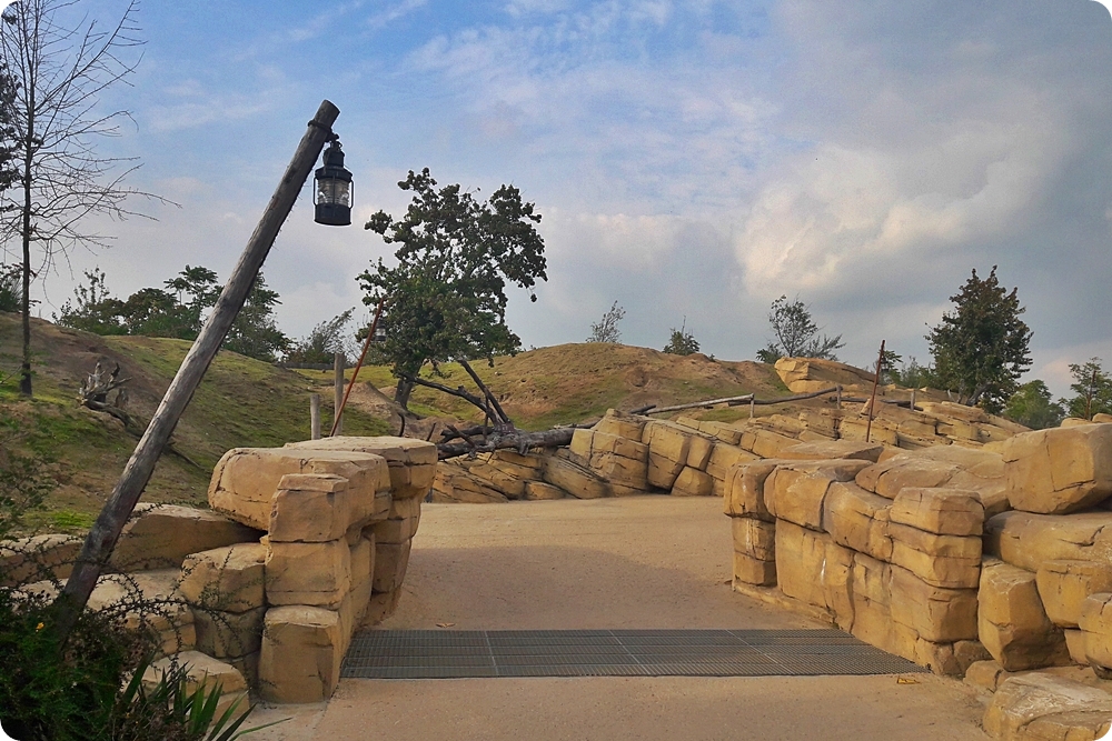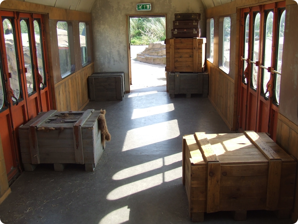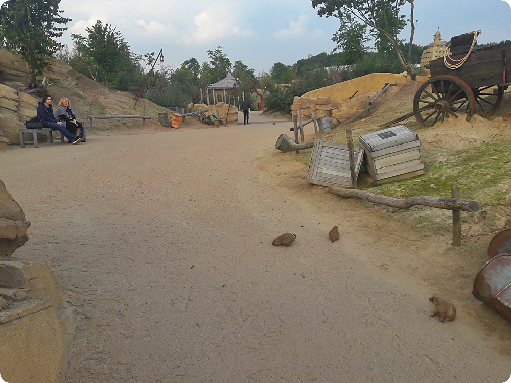 A „kunyhót” hátrahagyva a szafari alatt már részben megismert sivatag-bemutatóhoz juthatunk el. A látványban egyaránt megjelenő fiktív történet szerint a sivatagban kisiklott egy vonat, melynek hátrahagyott személykocsijai ötletes módon kettéosztják a kifutót lehetővé téve az esetleges szeparációt. A vasúti kocsikon továbbá a látogatók is keresztülhaladhatnak, így közelebbről is szemügyre vehetőek a sivatag lakói. Jelenleg a nagyobb kifutórészen élnek együtt a kétpúpú tevék és onagerek, míg 2017-es látogatásom alatt utóbbiak voltak leválasztva a kisebb kifutórészre.