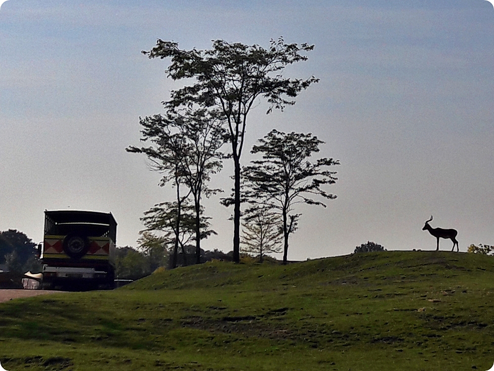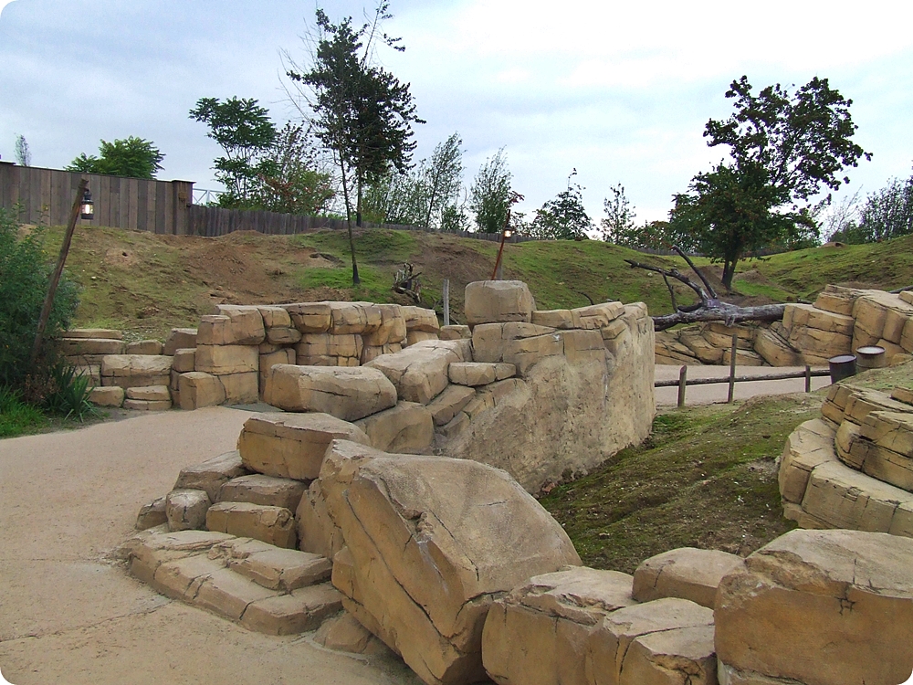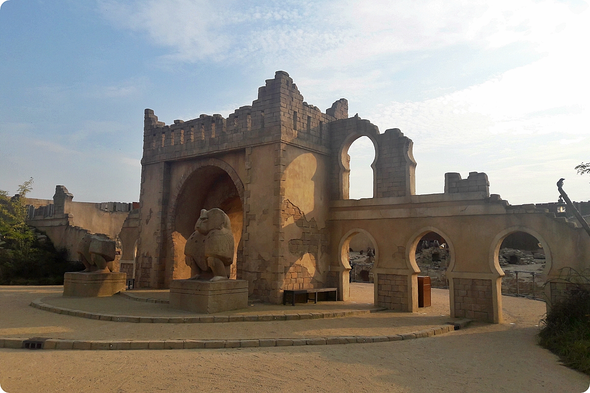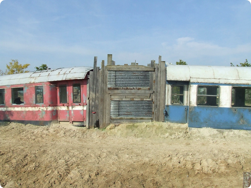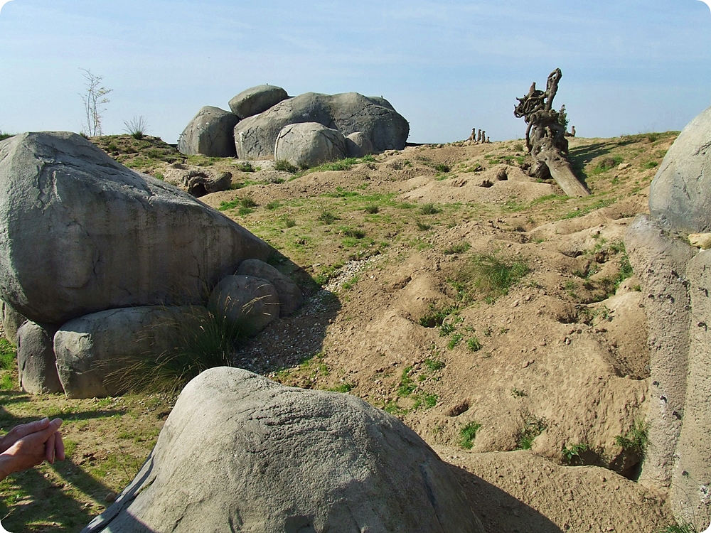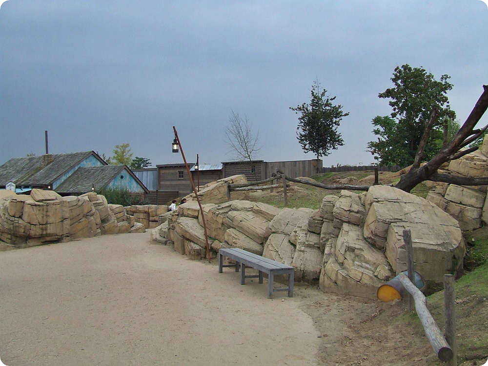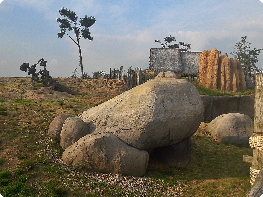 A „kunyhót” hátrahagyva a szafari alatt már részben megismert sivatag-bemutatóhoz juthatunk el. A látványban egyaránt megjelenő fiktív történet szerint a sivatagban kisiklott egy vonat, melynek hátrahagyott személykocsijai ötletes módon kettéosztják a kifutót lehetővé téve az esetleges szeparációt. A vasúti kocsikon továbbá a látogatók is keresztülhaladhatnak, így közelebbről is szemügyre vehetőek a sivatag lakói. Jelenleg a nagyobb kifutórészen élnek együtt a kétpúpú tevék és onagerek, míg 2017-es látogatásom alatt utóbbiak voltak leválasztva a kisebb kifutórészre.