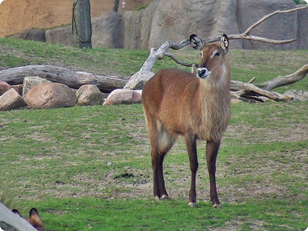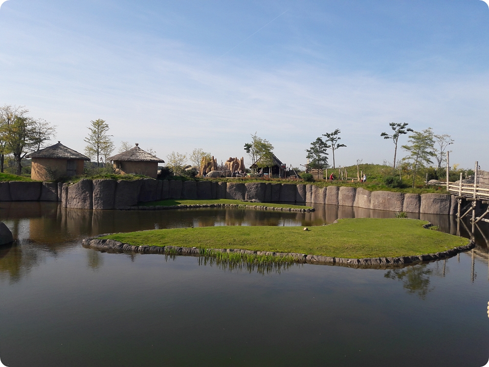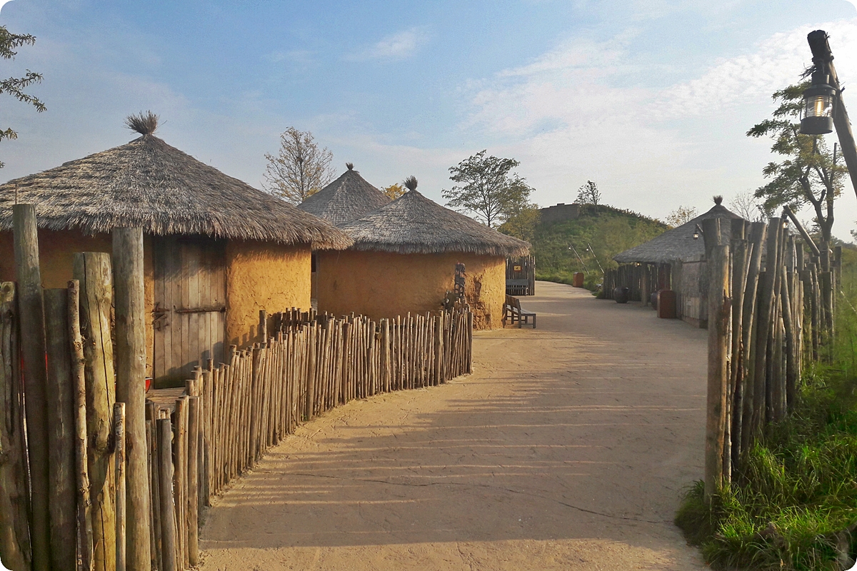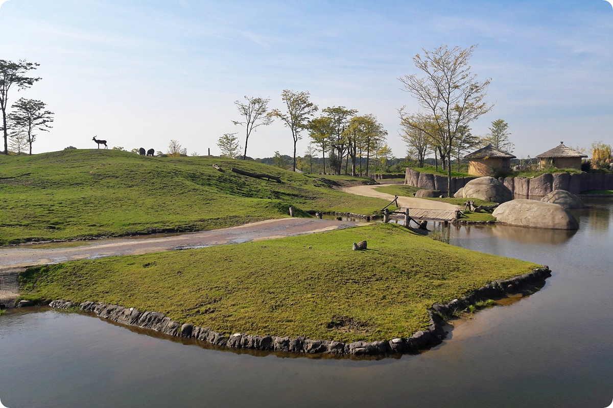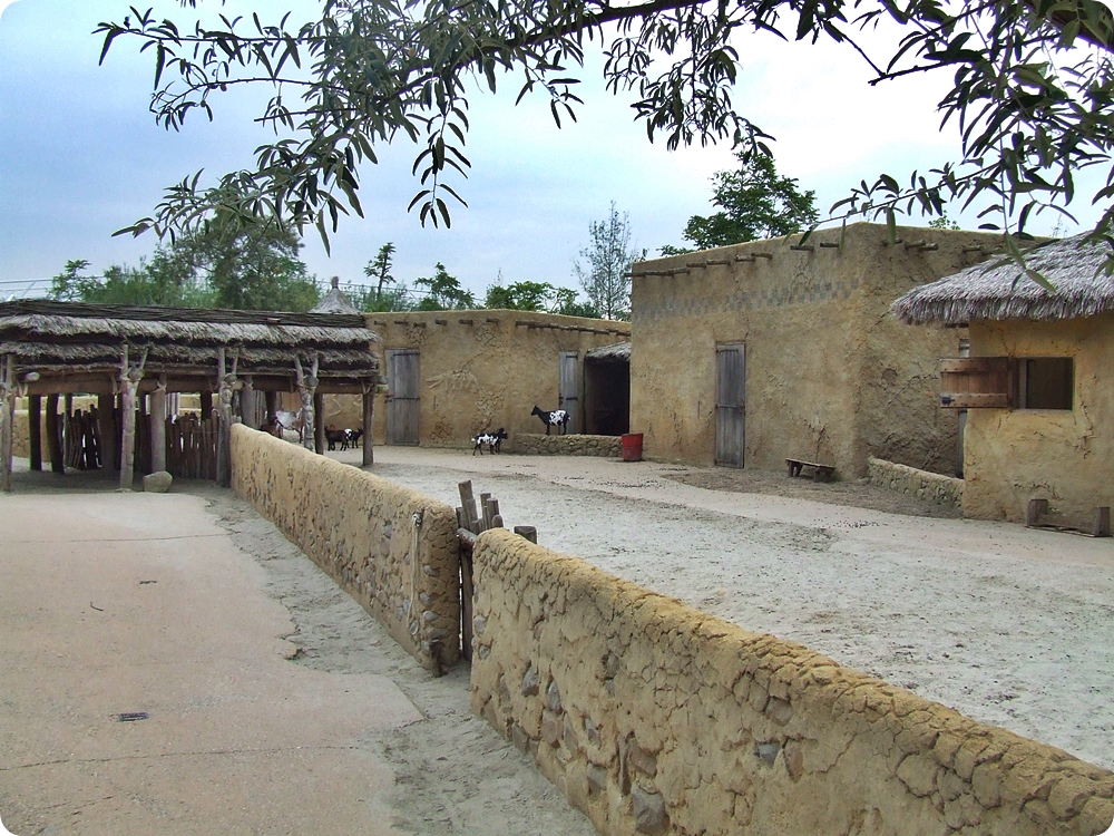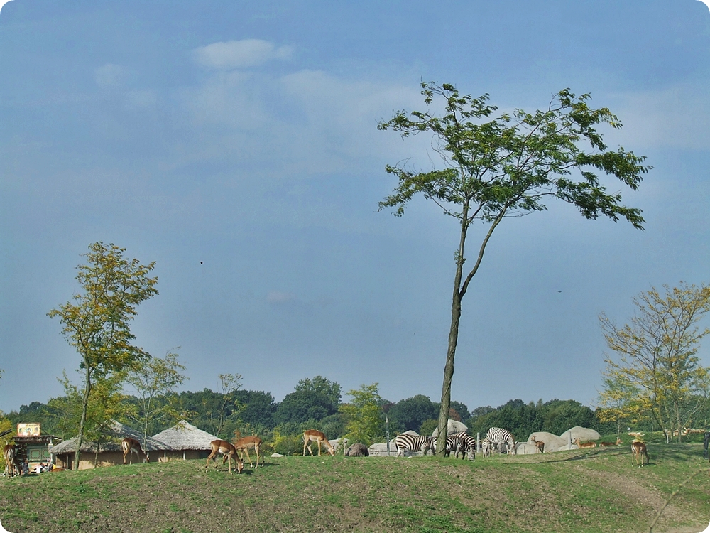 A kanyargós látogatói útvonal a „Zebu-kraal” (Zeboekraal) nevű bemutató irányába vezet bennünket. A „kraal” egy afrikaans (illetve régebbi nevén búr) vagy holland szó, amely eredetileg dél-afrikai falvakban szarvasmarhák vagy más haszonállatok tartására szolgáló nagyjából kör alakú területet jelent, melyet tövises bozótok ágaival, sárfallal vagy egyéb kerítéssel vesznek körbe. Az itt megjelenő település tulajdonképpen egy maszáj „karámfalu”, az az egy „maszáj kraal” másolata. A Kenya déli síkságain és Tanzánia északi részén élő maszájok Kelet-Afrika egyik legismertebb etnikai csoportja. A félnomád életmódjukról, feltűnő öltözetükről és a lakóhelyük nemzeti parkokhoz való közelsége miatt híres nép létfenntartásának és szokásainak középpontjában a szarvasmarha áll. E tematikának megfelelően a nádfedeles agyagkunyhók között kérődző zebukat – itt törpezebukat (Bos primigenius f. taurus) – láthatunk. A háziállatok jelenleg vörös folyamidisznókkal (Potamochoerus porcus pictus) élnek együtt a szavanna mellett.