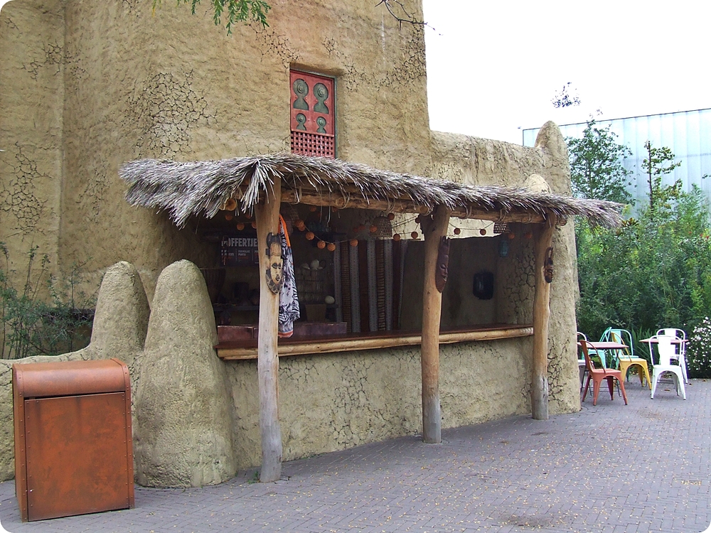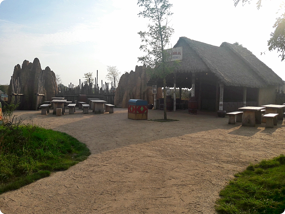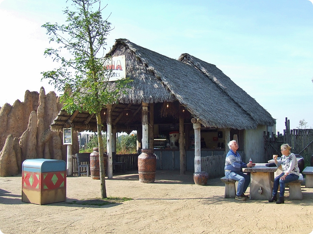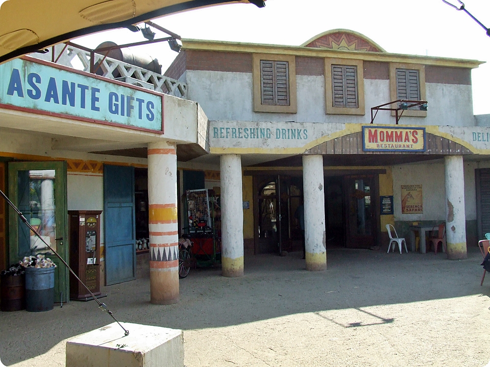 A pávián-bemutatót elhagyva a Serenga központi vendéglátóegységéhez, Momma Étterméhez (Momma’s Restaurant) érkezünk. A jókora téren számos fedett kiülő és egyéb pihenőhely szolgálja a felfrissülni vágyók kényelmét, de ajándékbolt is kialakításra került a területen. A legkisebbek pedig – az éppen hogy elhagyott Pávián aréna tematikájához illeszkedően – egy „mini-ásatáson” is részt vehetnek. Az étterem bejáratánál egy kisebb röpdében Málinkó-szövőmadarak (Ploceus cucullatus) és harlekinfürjek (Coturnix delegorguei) láthatóak.