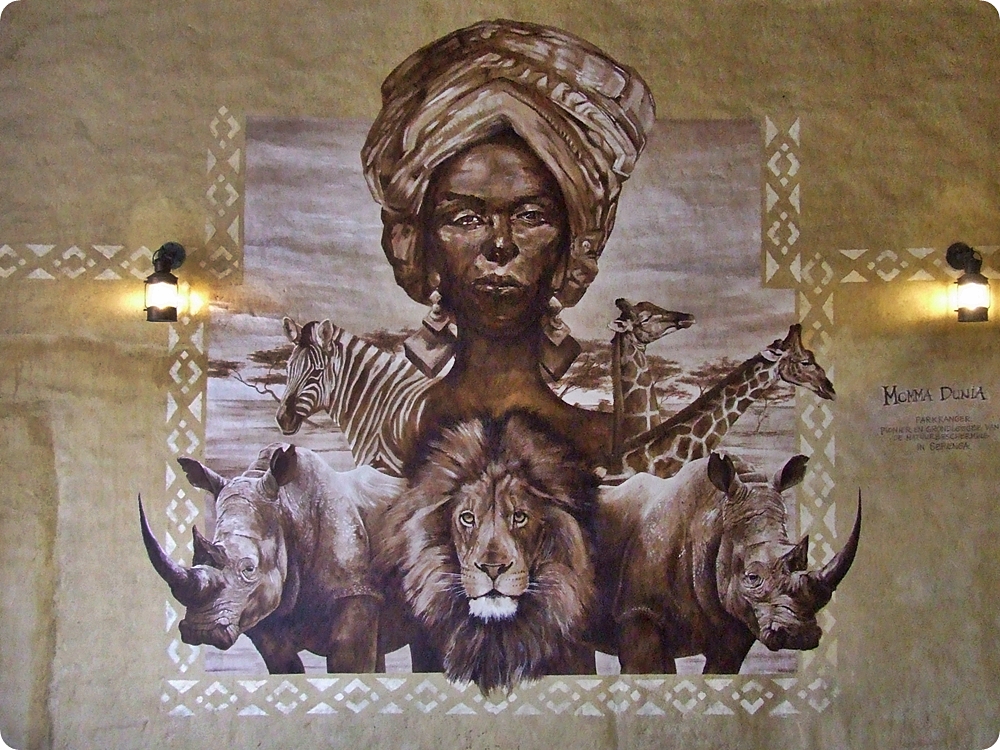 A forró és száraz trópusi éghajlati övezetet, szavanna és sivatagi élőhelyeket felvonultató Serenga bemutatórendszere a természettel való törődés és természetvédelem alapgondolatára épül. A történetmesélés e zónában megjelenő tematikus karaktere Momma Dunia, mely szuahéli nyelven „Földanyát” jelent. Momma Dunia egy tanzániai asszony volt, aki egész életét az orvvadászok elleni küzdelemre és a természet védelmére fordította. Az itt megjelenő történet szerint egy természetvédelmi területet hozott létre, amelyet ma utódai gondoznak és tartanak fenn.