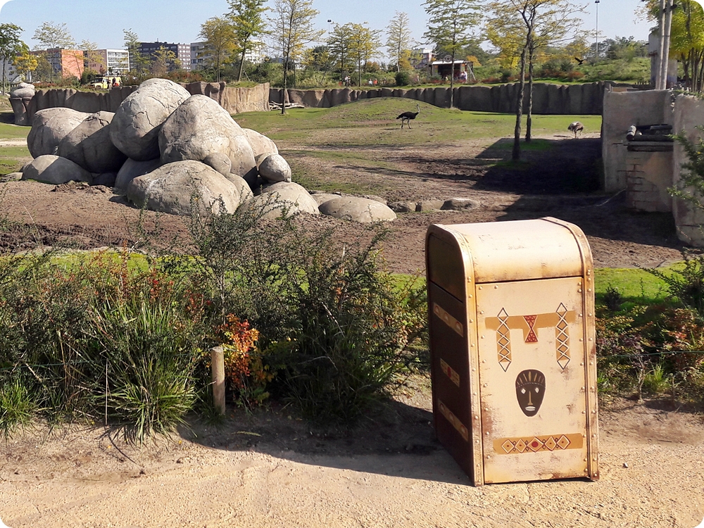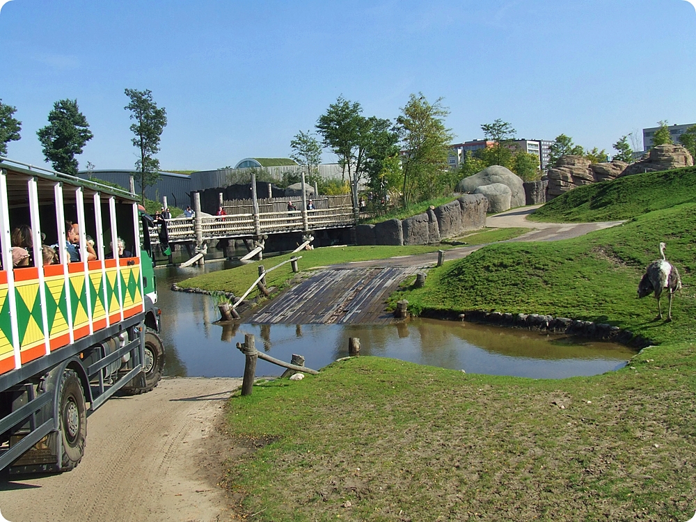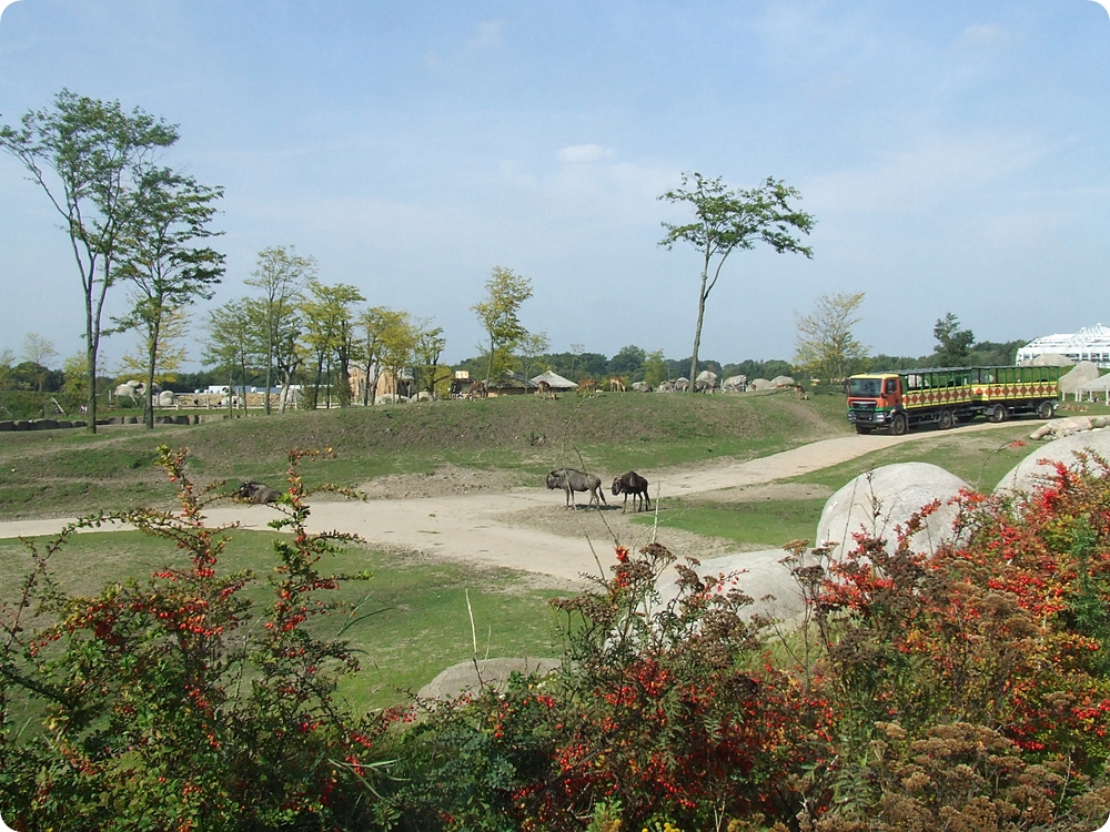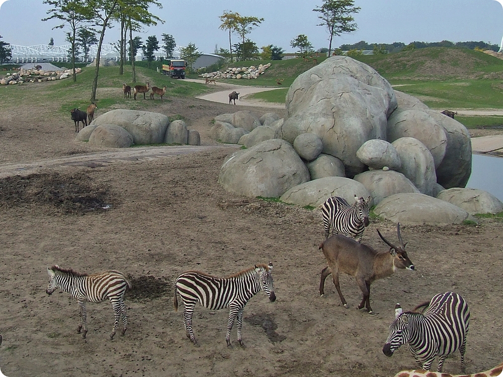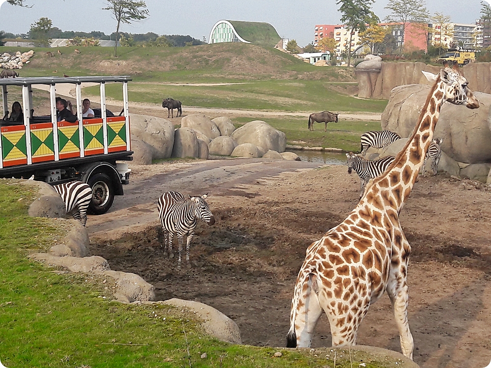 Az említett, több mint félkilométeres szafari azonban nem pusztán a Szavannán vezet keresztül: a teherautók áthajtanak a szomszédos, a szavannához mérten nagyjából negyedakkora, de még így is terjedelmes Sivatagon (Woestijn), ami kétpúpú tevék (Camelus ferus f. bactrianus) és onagerek (Equus hemionus onager) jelenleg közös, de korábban szeparált otthona. Az ázsiai tematikájú társaskifutóba horizontálisan futó villanypásztorral határolt marharácson keresztül hajt be a jármű a műsziklával szegélyezett autóúton, mely megakadályozza az afrikai és ázsiai fauna „keveredését”. Az onagerek tenyészprogramjában igen sikeresen vesz részt az intézmény: a jelenleg nyolcfős csapatban két csikó is született az elmúlt 12 hónapban. A legújabb tervek szerint itt, a serengai sivatagban kerül majd bemutatásra továbbá egy újvilági teveféle, a vikunya (Vicugna vicugna), mely faj első egyede 2021 januárjában meg is érkezett az intézménybe. Kiindulóállomásunkra visszatérve ismét gyalog folytathatjuk a Szavanna körbejárását. Érdemes továbbá megjegyezni, hogy a Serenga sivatagjában megjelenő kisiklott vonatszerelvény személykocsijai nem pusztán újra felhasznált tárgyak, hanem egyúttal a dizájn fontos alkotóelemei is egyben, melyeken áthaladva egy gyalogos túra keretében közelebbről is szemügyre vehetőek a sivatag lakói.