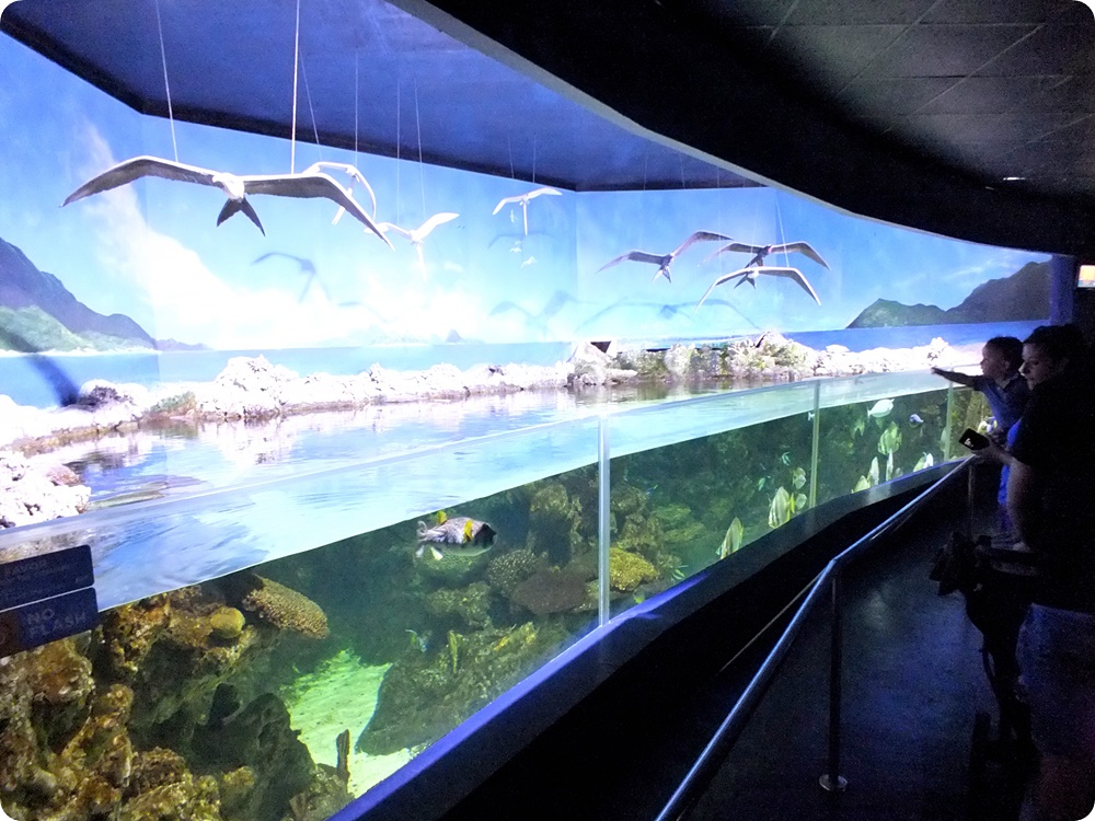 Az üvegpiramisra emlékeztető, félreeső helyen fekvő Akvárium (ami az állatkert nevében is megjelenik) elsősorban tengeri és brakkvízben élő halakat mutat be, a tartályokban összesen mintegy két millió liter vízzel.