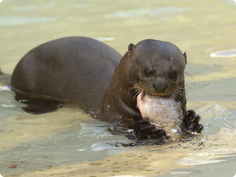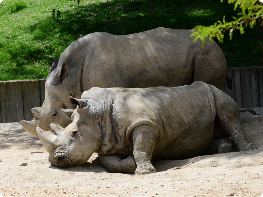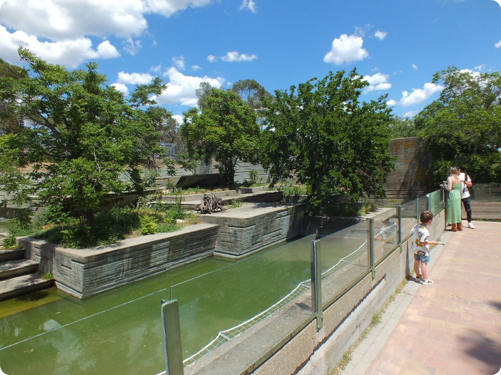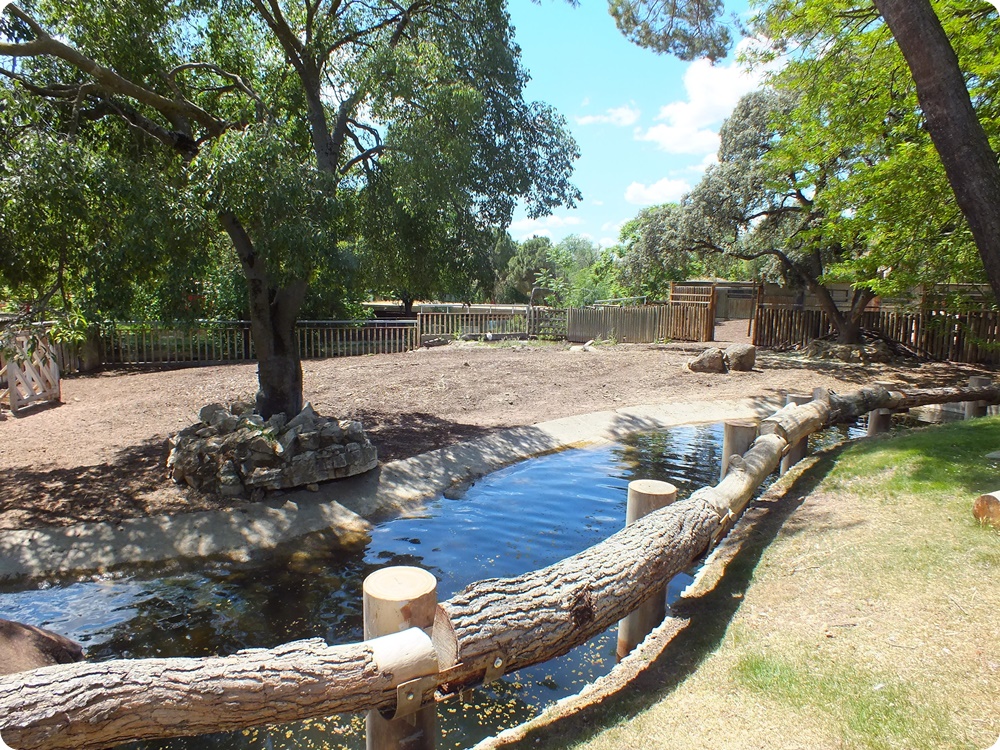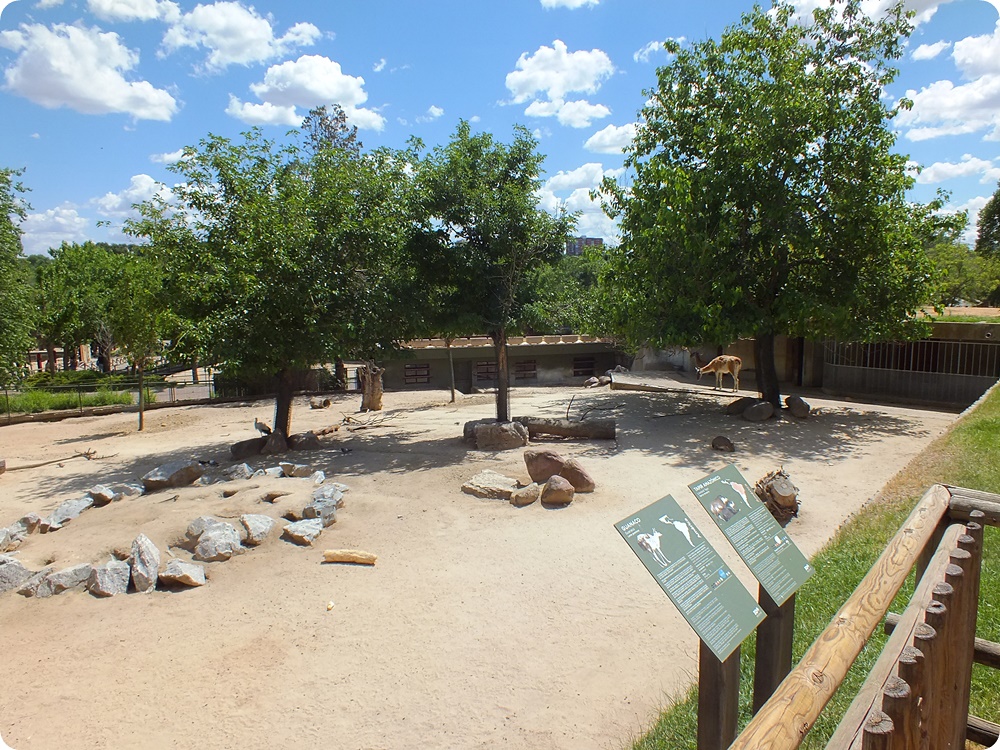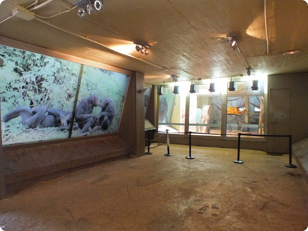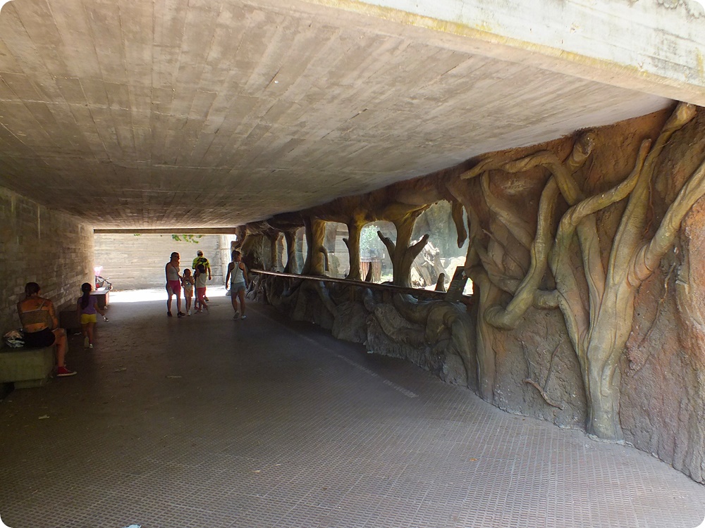 A síkvidéki nyugati gorillák (Gorilla gorilla gorilla) kifutója az egyik legfurcsább, amit eddig láttam. Keskeny, hosszan elnyúló, fűvel borított külsőjük kicsi alapterületű (konkrét adatot sajnos nem találtam a méretére vonatkozóan), ráadásul gyakorlatilag mindenféle mászóalkalmatosságot nélkülöz. Madridban 1976 óta foglalkoznak gorillákkal, az első kölyök 1988-ban született. Érdekesség, hogy a jelenlegi hattagú gorillacsapat egyik tagja az 1996-ban Budapesten született Gorka. Nem kell messzire menni egy másik régi ismerős kedvéért: az óriásvidrák (Pteronura brasiliensis) tágasnak mondható, de nem túl szemet gyönyörködtető kifutójának egyik lakója a korábban évekig Budapesten élő Cora.