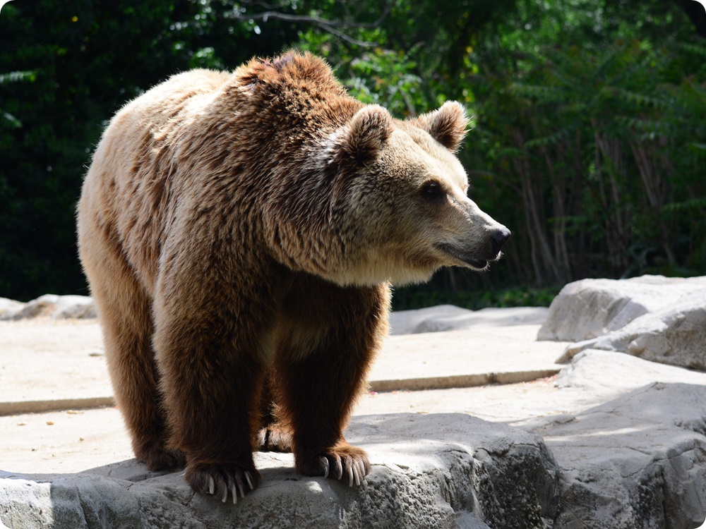 A sziklás, a látogatóktól szárazárokkal elválasztott medvekifutóban európai barnamedvék (Ursus arctos arctos) élnek. Mai szemmel a kifutó kissé idejétmúltnak tűnik, a medvék számára nem áll rendelkezésre természetes talaj, növényzet nincs, és nagyon kevés védelmet biztosít a forró mediterrán naptól. Számomra meglepő módon a szomszédos farkaskifutóban nem a Spanyolországban élő, ritkaságnak számító ibériai farkasokat (Canis lupus signatus) láthatjuk: a Zootierliste szerint az állatkertben alfaji keverék farkasok élnek, és a kifutó melletti fajtáblán sem nevezik meg őket alfaji szinten, az állatkert honlapja szerint viszont Mackenzie-völgyi vagy északnyugati farkasokról (Canis lupus occidentalis) van szó. Mindenesetre megjelenésüket tekintve valóban észak-amerikai alfajra hasonlítanak. A ragadozók kollekcióját két kisebb kifutóban elhelyezett európai nyércek (Mustela lutreola) egészítik ki, akiket sajnos (mint ahogy korábban számos más állatkertben) most sem sikerült megpillantanom.