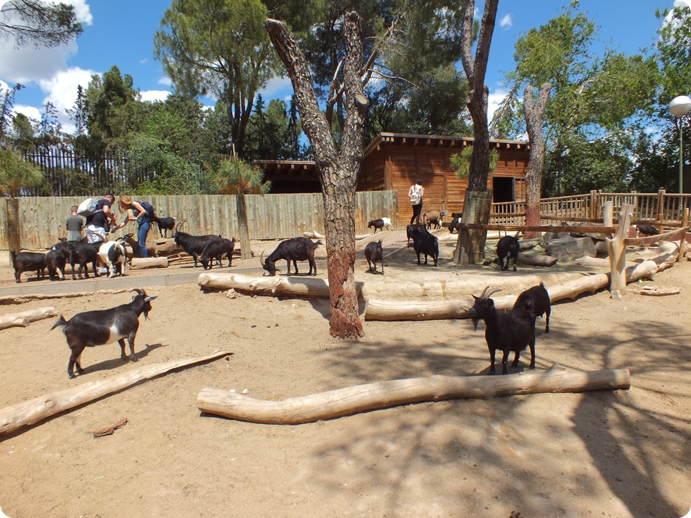 Az állatkert területére lépve, a bejárati zóna jobb oldalán – némileg klasszikusnak tekinthető módon – rózsás flamingók (Phoenicopterus roseus) csapata üdvözli a látogatókat. A bejárattól balra találjuk a kert számomra talán legizgalmasabb zónáját: az európai faunát bemutató részt. Bár sok állatkert mutatja be kontinensünk állatvilágát, a madridi kollekció specialitását az ibériai fajok, alfajok bemutatása adja, mely nem jellemző a kontinens nagy részére, ezért ezt a területet szeretném a többinél kissé részletesebben bemutatni. Itt találjuk a mindössze öt európai (kizárólag spanyol) állatkertben bemutatott délkelet-spanyol kőszáli kecskék (Capra pyrenaica hispanica) muflonokkal (Ovis gmelini) közös kifutóját. A spanyol kőszáli kecske (Capra pyreneica) faji szinten is állatkerti ritkaságnak számít, Spanyolországon kívül pedig mindössze egy francia állatkertben találkozhatunk vele Európában. Rögtön meg is csodálhatjuk a leginkább szembetűnő madridi jellegzetességet: a csupasz betonból kialakított műsziklákat. Ebben az esetben a tervező nem is törekedett a természetesség látszatára, és sajnos (érthető okokból) növényeket se tudtak a kifutóba telepíteni, hogy kissé enyhítse a betontömb mesterséges jellegét. A kifutóval szemben találjuk a szintén ritkaságnak számító ibériai sasok (Aquila adalberti) röpdéjét. A parlagi sashoz (Aquila heliaca) hasonló, korábban annak alfajaként számon tartott ragadozók jelenleg hat európai állatkertben láthatóak. A mellettük található röpdét fakó keselyűk (Gyps fulvus) lakják. A terület számomra, a ragadozók, különösen a macskafélék rajongójának talán legizgalmasabb állata az ibériai hiúz vagy párduchiúz (Lynx pardinus), madridi utazásom elsőszámú célja. Az európai hiúznál (Lynx lynx) kisebb termetű faj Európa legritkább macskaféléje, a vadonban néhány száz egyed található belőle, állatkertben is kifejezetten ritkán látható, jelen sorok írásakor hét európai kertben mutatják be, ebből öt Spanyolországban, egy pedig Portugáliában van. Madridban egy párt tartanak: szépen növényesített, tágas kifutójukban kihívás felfedezni a rejtőzködő macskákat, de megéri időt szánni rá. Szintén a helyi fauna képviselője az ibériai gímszarvas (Cervus elaphus hispanicus), a nálunk is honos gímszarvas helyi alfaja, mely az Ibériai-félszigeten kívül egyetlen állatkertben sem látható. A szarvasok gyűjteményét dámszarvasok (Cervus dama) és rénszarvasok (Rangifer tarandus) egészítik ki, és itt találjuk az európai bölényeket (Bison bonasus) is. Kifutóik száraz- vagy vizesárokkal határoltak, remek rálátást biztosítanak az állatokra, bár nem túl tágasak. Korábban a bölényekkel pireneusi vaddisznók (Sus scrofa castillianus) is éltek a kifutóban, a vitatott rendszertani helyzetű disznók azonban 2023-as látogatásomkor már nem voltak a kert lakói.