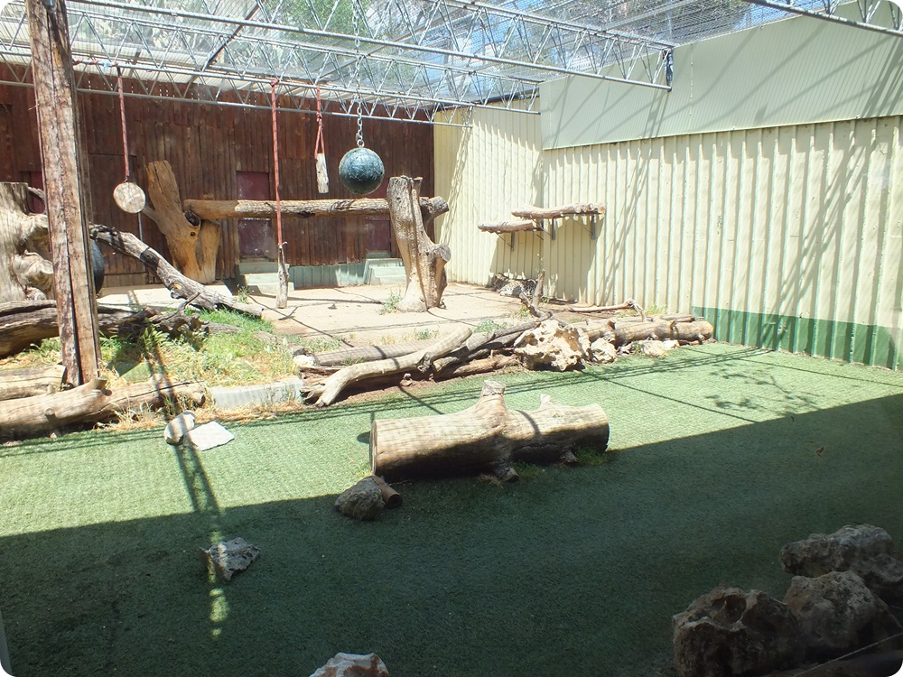 Nagyon jellegzetes a nagymacskák kifutórendszere. Két nagyobb, vizesárokkal határolt kifutóban ázsiai oroszlánok (Panthera leo persica) és szibériai tigrisek (Panthera tigris altaica) láthatóak. Utóbbiak 2024 eleje óta az állatkert lakói, a 2023-ban elpusztult utolsó fehér tigris pótlására két fiatal szibériai hím érkezett. A kifutók viszonylag nagy területűek, teraszos kialakításúak, de sajnos nem mondhatóak szépnek, bár a betelepített növények, fák jelentősen javítanak az összképen, különösen az oroszlánkifutó esetében. A korábbi ragadozóketrecek felújításával két kisebb kifutót is kialakítottak a területen. A rácsokat üvegfalakra cserélték, és láthatóan több kisebb ketrec összenyitásával megnövelték az alapterületet, azonban így se igazán felelnek meg a modern állattartás feltételeinek. Az egyik ilyen kifutó lakói perzsa leopárdok (Panthera pardus saxicolor), a másikban kaffer szarvasvarjak (Bucorvus leadbeateri) élnek.