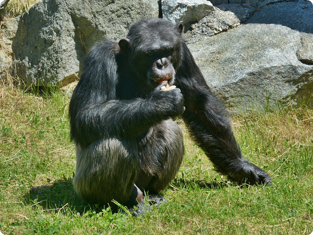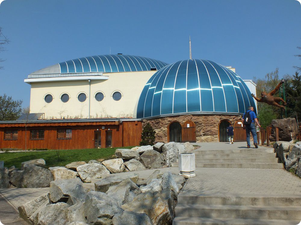 A Nagymacska-házat elhagyva a hóbaglyok (Bubo scandiacus) futballabda-szerű röpdéje mellet vezet az utunk. A közeli tervek közt szerepel egy új, a jelenleg túl zajos és klimatikusan nem megfelelő férőhelyet kiváltó röpde építése. Innen már jól látszik a kert leglátványosabb épülete, a 2007-ben átadott Főemlősház, melynek felépítése az állatkert történetének egyik mérföldkövét jelentette. A kék kupolás, kissé furcsán ható, belül kissé illúzióromboló műnövényekkel dekorált épületben jelenleg két emberszabásút: csimpánzokat (Pan troglodytes) és szumátrai orangutánokat (Pongo abelii) tartanak. A házban több szintről megtekinthető, tágas, műsziklával díszített belső kifutókat találunk. A hozzájuk csatlakozó külsőkben a látogatók üvegfalon át tekinthetik meg. Bár méretük megfelelő, véleményem szerint főleg a csimpánzok férőhelye elbírt volna némileg több mászóalkalmatosságot. Az orángutánoknál ebből a szempontból jobb a helyzet. Két ismerőst is üdvözölhetünk köztük: Mengala és fia, Vilmos budapesti születésűek, kisebb lipcsei kitérővel érkeztek Pozsonyba. A későbbiekben az állatkert tervei szerint új csimpánzház és kifutó épül majd, a jelenlegi csimpánzkifutóban pedig gorillákat szeretnének bemutatni.