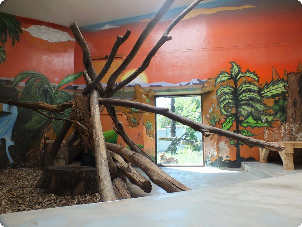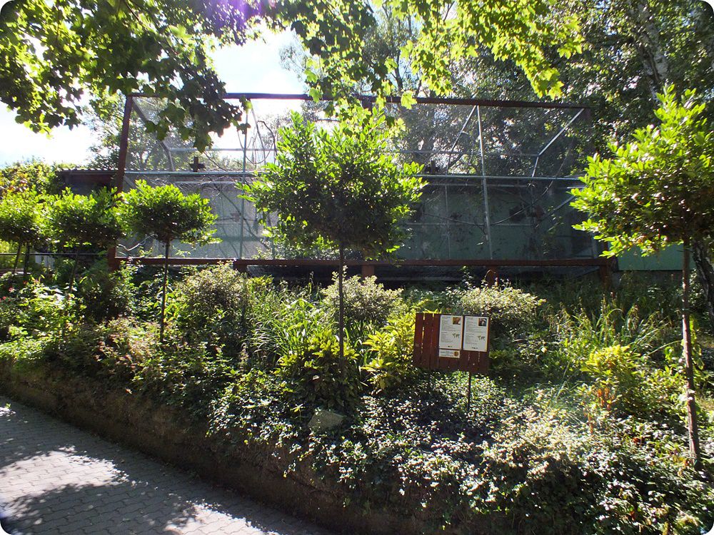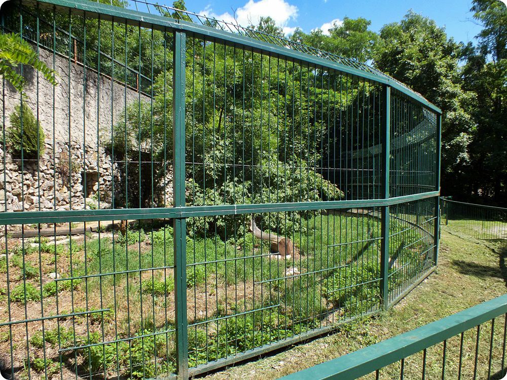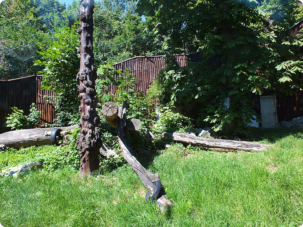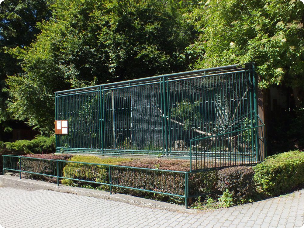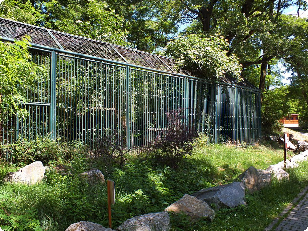 A Főemlősháztól nem messze vastag rácsokkal határolt ketreccsoportot találunk. Jelenleg a nagyobb férőhelyben berber makákók (Macaca sylvanus) élnek, míg a kisebb ketrec lakói aranyarcú gibbonok (Nomascus gabriellae). Utóbbiak az ideálisnak nem mondható körülmények ellenére rendszeresen szaporodnak. A rácsok vastagságából hamar rájövünk: a ketrec eredetileg csimpánzok tartására szolgált.