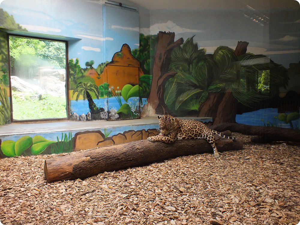 Az állatkert megújulásának első lépéseként épült meg a macskafélék új, tágas, gazdagon növényesített kifutórendszere 2006-ban. A látogatók több ponton elhelyezett betekintő ablakokon figyelhetik meg a ragadozókat. Jelenleg négy nagymacska-fajt mutatnak be. A zoológiai csemegékre éhes látogatók számára legérdekesebb közülük az állatkertekben viszonylag ritka Srí Lanka-i leopárd (Panthera pardus kotiya). Jelenleg egy párt tartanak, a Pozsonyban született nőstény mellé Veszprémből érkezett hím. A következő, a leopárdokéhoz hasonlóan felülről hálóval fedett, műszikla háttérrel díszített férőhelyet a jaguárok (Panthera onca) birtokolják. A pár mindkét tagja a foltos színváltozatot képviseli. A két külső kifutó között találjuk az állatok belső férőhelyeit. Ezek a látogatók számára is megtekinthetőek. Bár méretük megfelelő, számomra a kissé giccsesre sikerült falfestmények miatt idegenül hat. A tigrisek (Panthera tigris) és az oroszlánok (Panthera leo) a másik két nagymacskához hasonlóan kialakított létesítményeket kaptak. A kifutórendszer építésekor a kert szumátrai tigriseket (Panthera tigris sumatrae) tartott, jelenleg fehér tigriseik vannak. Érdekesség, hogy a hím, Achilles korábban a Nyíregyházi Állatpark lakója is volt. A pár rendszeresen szaporodik. Az oroszlánok a dél-afrikai alfajt (Panthera leo kruegeri) képviselik, a nőstény normál sárgásbarna, míg a hím fehér színű. Az egykori ragadozóketrecek mementójaként egyetlen vasrácsos kifutó maradt meg; néhány évvel ezelőtt karakálokat (Caracal caracal) tartottak itt, ma északi petymegek (Genetta genetta) lakják.