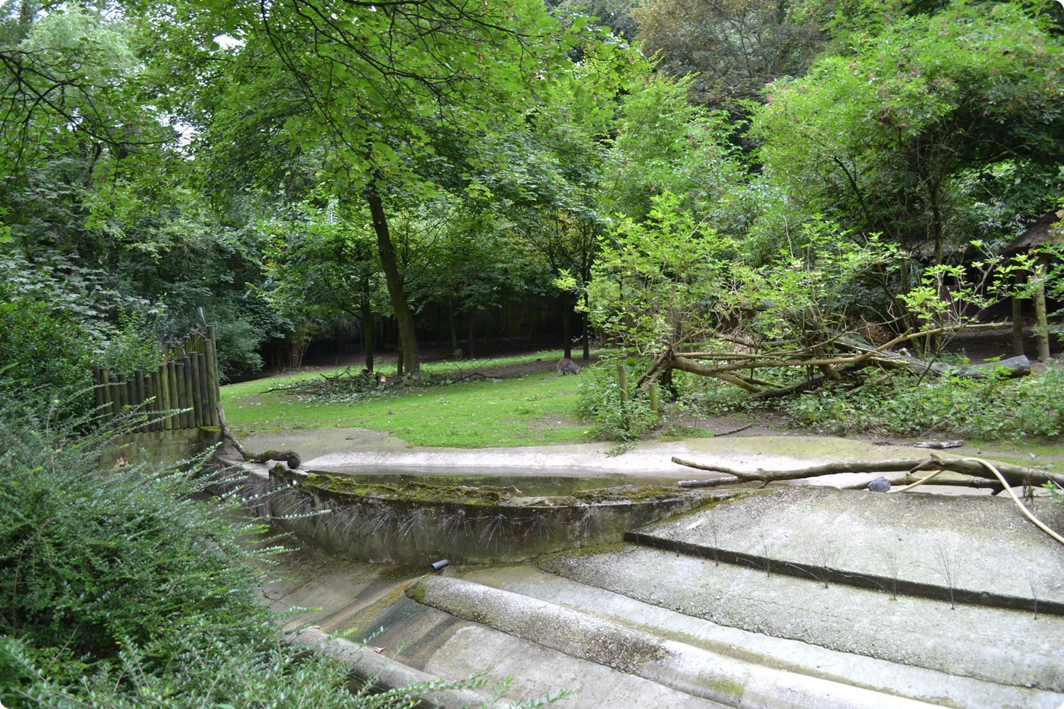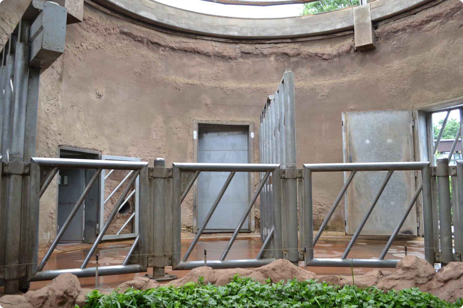 Akárcsak a nőstények kifutórészén, az elefántbika külső kifutója esetén is több helyen csak szárazárok határolja a területet.